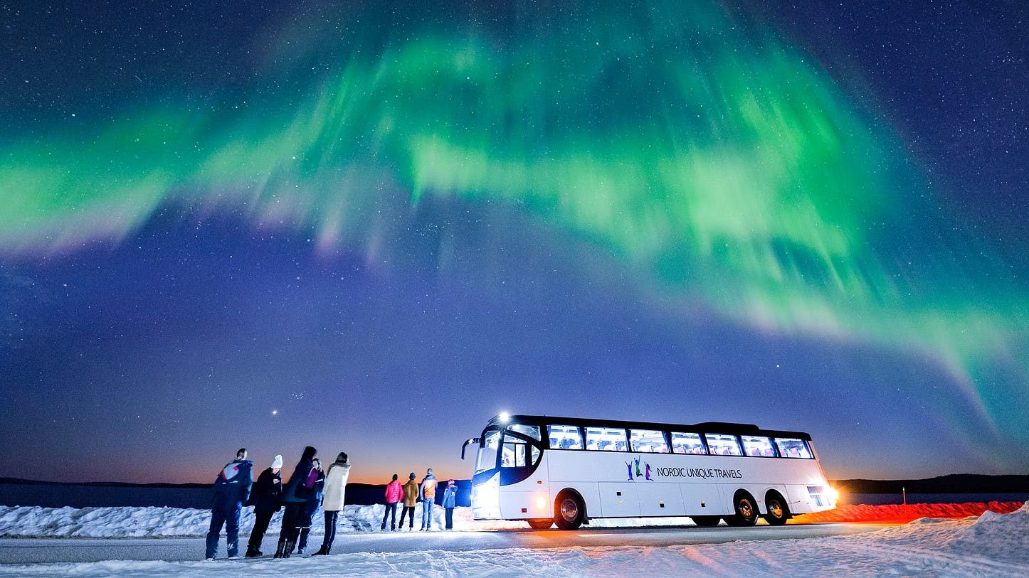 • Join our Northern Lights bus tour to witness the aurora across the night sky