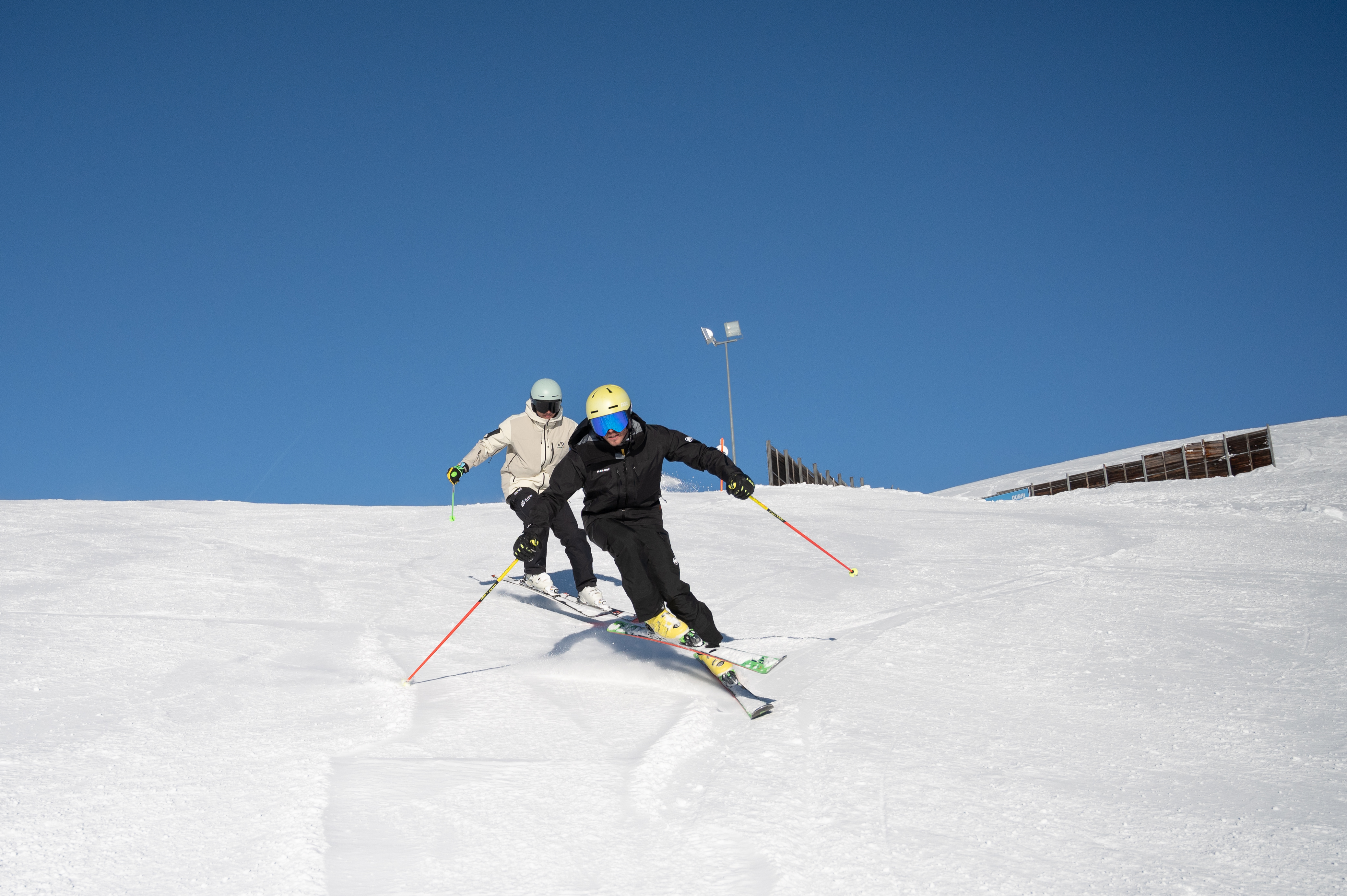 Do you want to learn how to ski or take your skills to the next level? Then you are in the right spot with our private ski lessons for adults in Davos. Our lessons are designed for every riding skill, from beginners to advanced skiers. You can book these lessons for groups of up to 5, ensuring personalised attention from our experienced instructors. Initially, beginners will learn the essentials of skiing, including mastering the equipment and executing their first turns. Intermediate and advanced skiers will focus on refining their skills, such as parallel skiing, handling steeper slopes, and enhancing their technique.