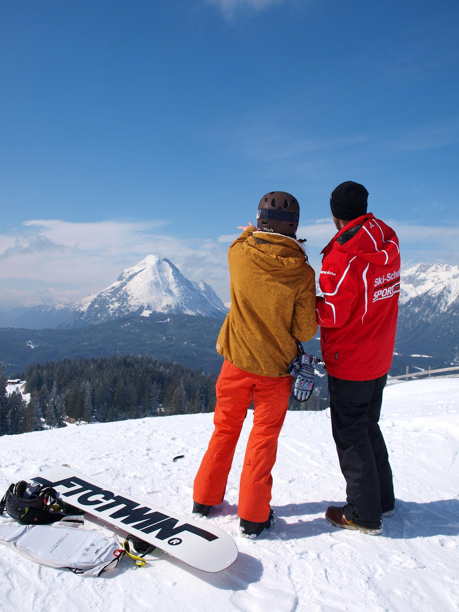 We meet on Monday 15 minutes before the lessons start at the bottom station of the Gschwandtkopf lift in Seefeld, next to the SPORT AKTIV board.