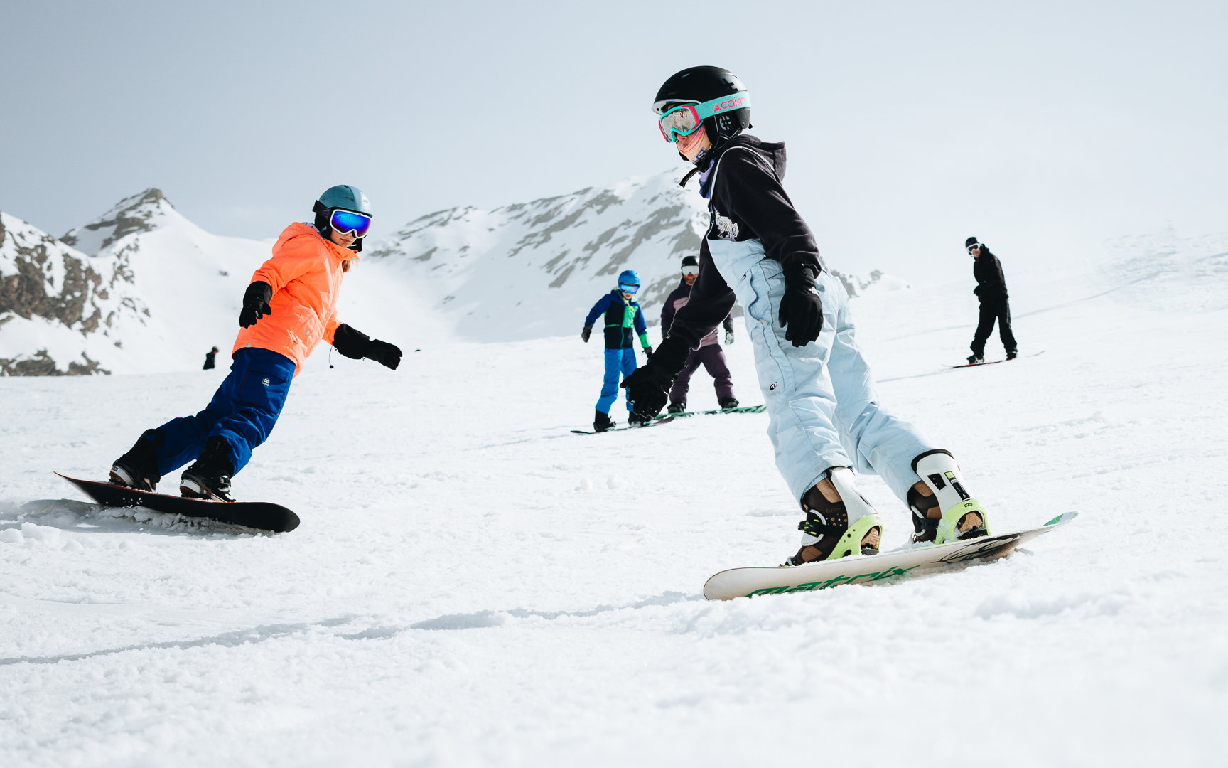 Our snowboarding lessons welcome kids aged 8 years and older, teenagers and adults. Groups of up to 8 participants are formed, based on the individual skills and age of the participants, thereby allowing for targeted learning to suit every individual's needs.