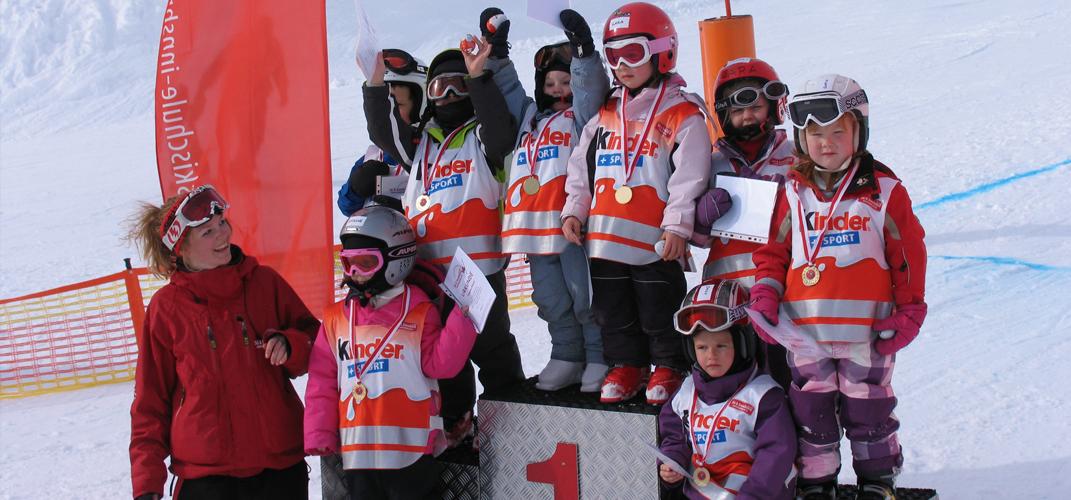 In our Kids' Land on Innsbruck's local mountain, which is equipped with a magic carpet, funny figures and gate runs, it is immediately much easier for the little ski stars to learn plough turns and to do their first slalom. Our mascot Bärnhard supports the kids and applauds their successes. The playful approach combined with an adapted course programme and ideal practice terrain helps to achieve the greatest possible learning success. The highlight of the week is the moderated final race, where every participant receives a medal and a certificate.