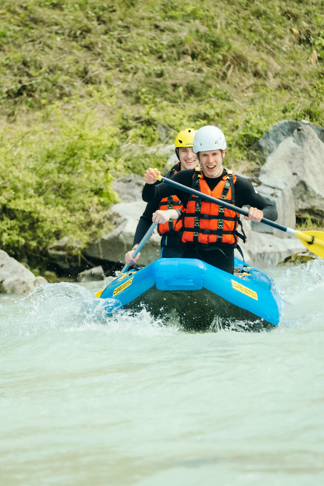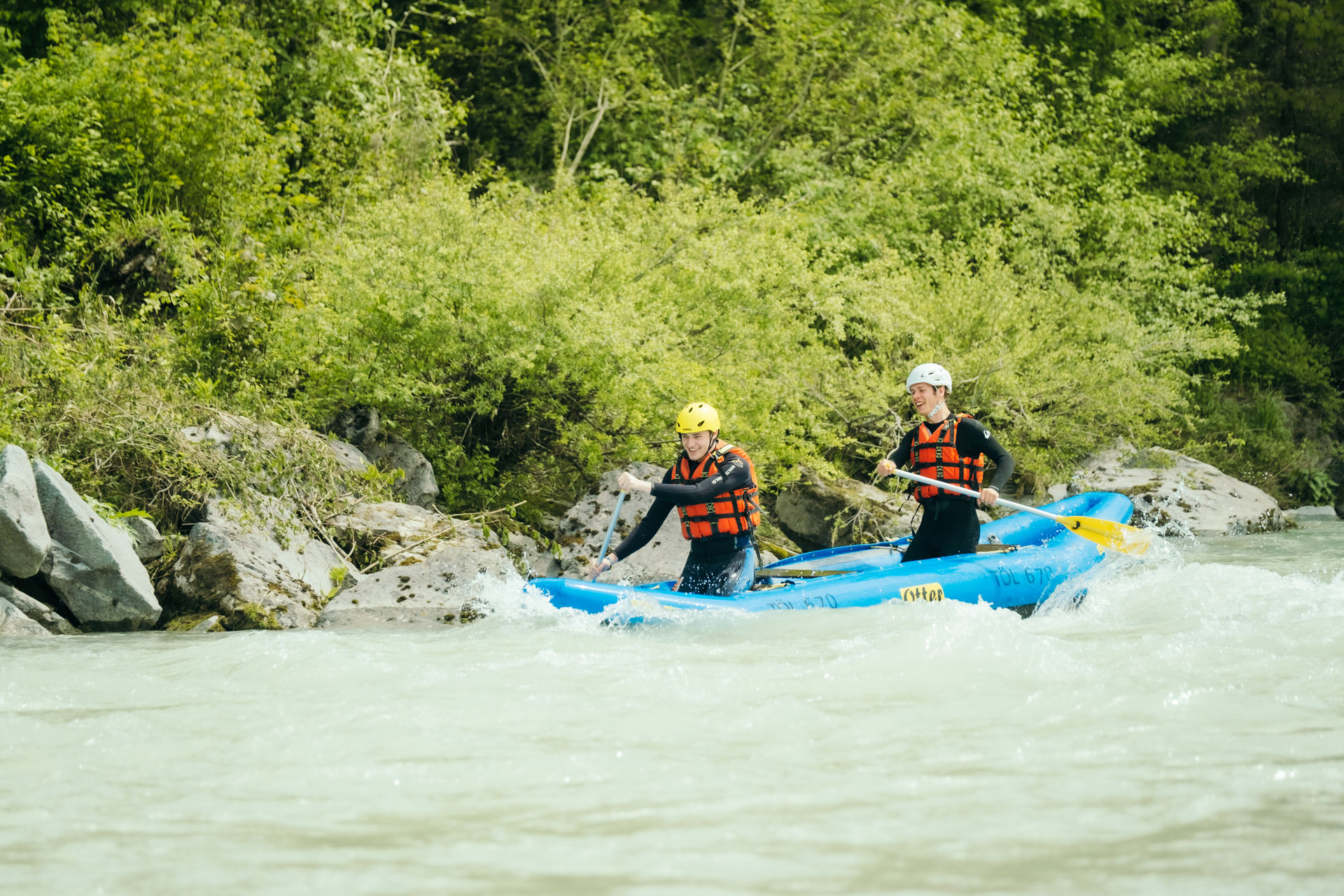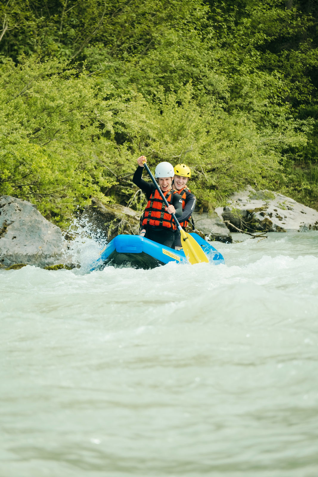 You will manoeuvre through the river in pairs in a Canadian raft, yet united as a group, all the way to the end of the river.