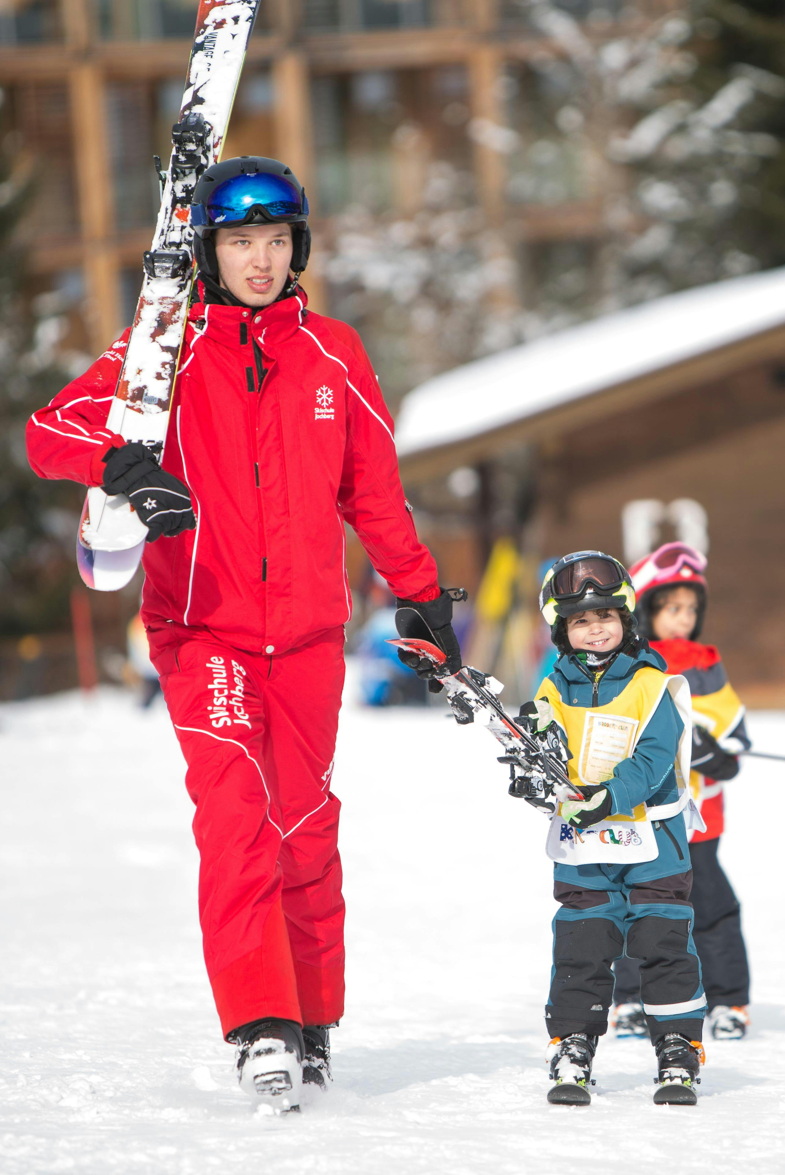 If you book ski equipment for your children, you can pick it up from Monday to Sunday between 8:30 am and 5:00 pm in the ski school office.