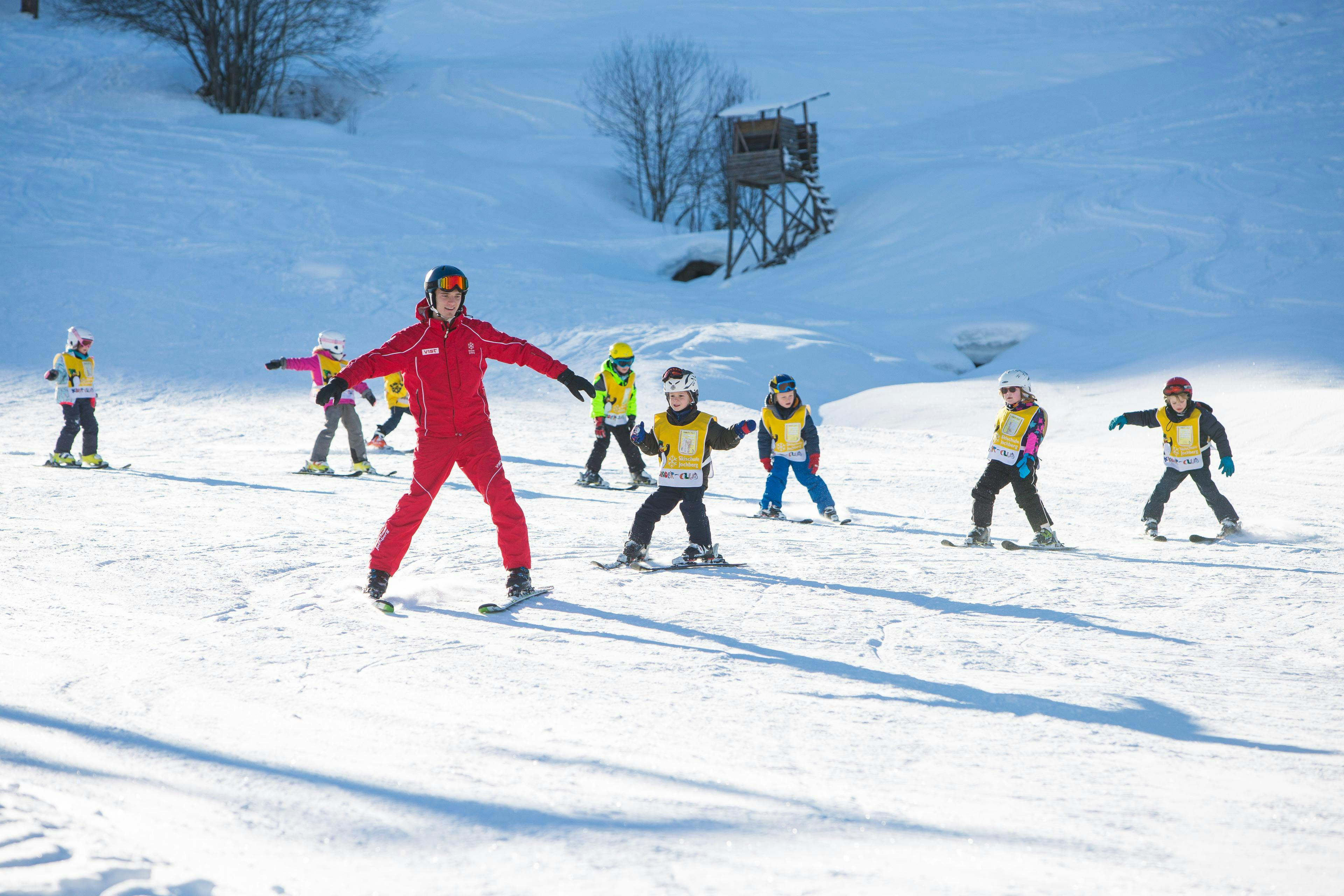 In a group of children, based on age and abilities, our qualified ski instructors will teach the basics of skiing to your future skiers. Here, we focus on stopping safely and using the snowplough. Slowly, we move to making turns and very soon, they will be practising their very first descents on the mountains.