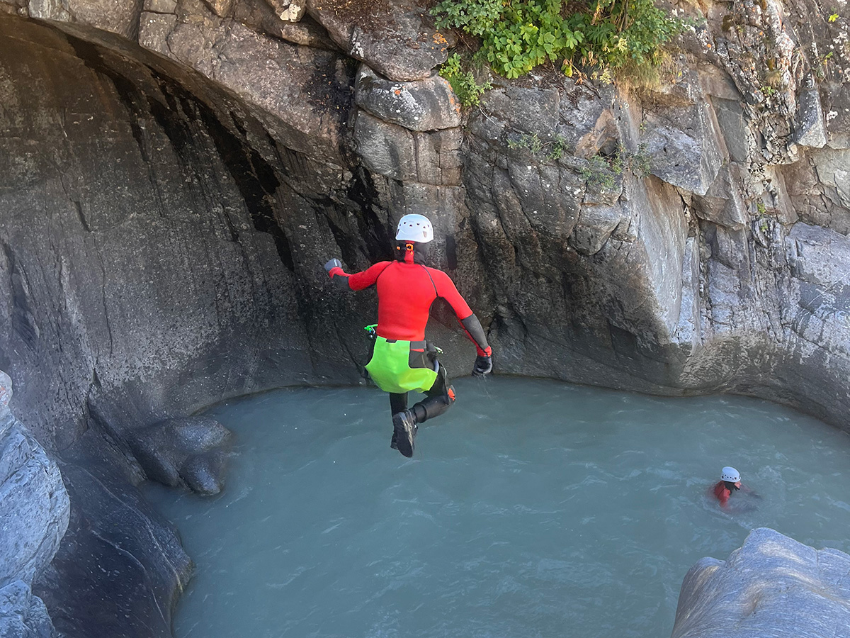 This canyoning tour in the Chalamy is a real natural playground and the perfect occasion for having fun with your family! Together with our certified guides you will explore a breathtaking route that will allow you and your children to live an unforgettable experience in total safety, filled with a