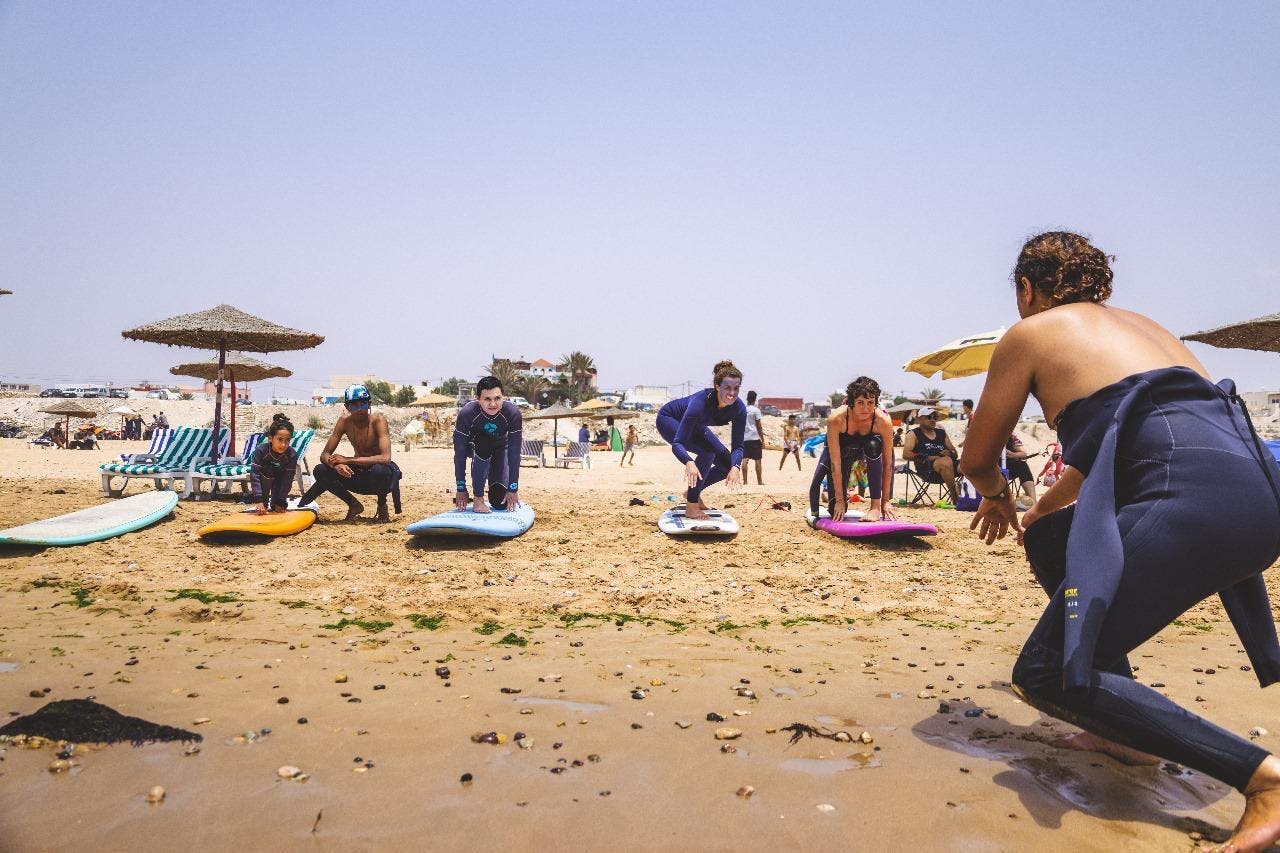 Welcome to Surf les Vagues Sidi Kaouki. With us, you willl learn how to catch the Moroccan waves perfectly. Our instructors, who are all very experienced in teaching, will take the time to make sure you get the best intructions. Each of them are specialists, in their own way. Depending on what you look for and your level, you will get to catch your first waves, refining your skills or be empowered to push your limits on the board through good and precise advice! Jump on your board and join us for a fun lesson.