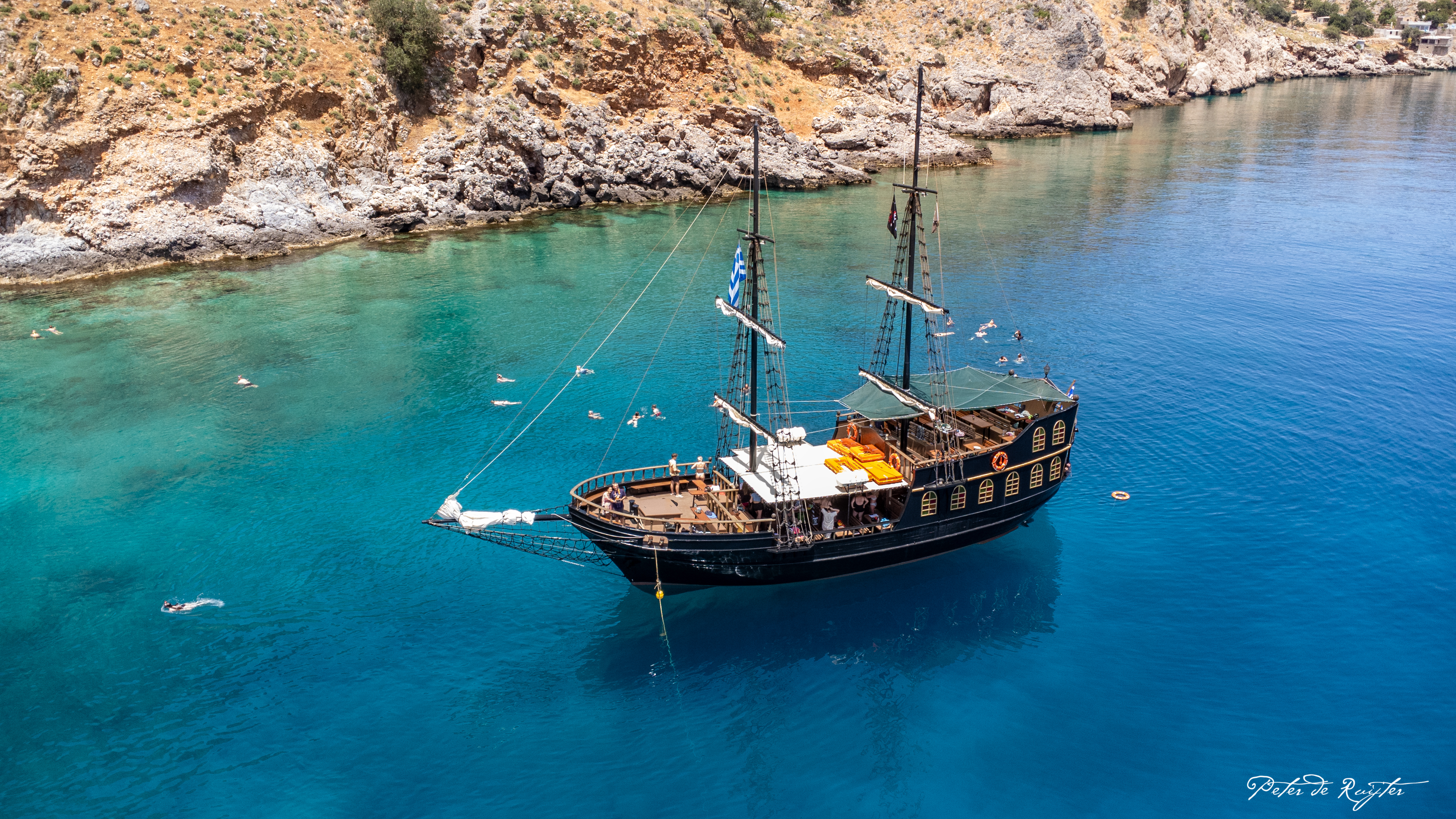 Pasa una tarde en el agua con nuestro paseo en barco pirata a la bahía de Kefalas en Creta con esnórquel. Salimos desde el puerto marítimo de Rethymno, navegaremos pasando La Fortezza, una fortaleza histórica construida por los venecianos en el siglo 16. Después, seguiremos hacia el este y pasaremos por la bahía de Gerano hasta llegar a nuestro destino final: la bahía de Kefalas. Durante el trayecto, también disfrutaremos de una ensalada tradicional griega, acompañada de vino o refrescos.