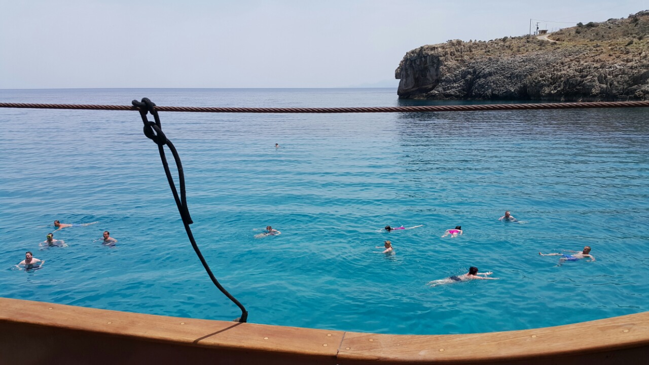 Pararemos en la bahía 1 hora y podrás disfrutar de un bañoen las aguas cristalinas. También puedes usar nuestro material de esnórquel a bordo y admirar las especies submarinas del mar de Creta. A la vuelta pasaremos por las cuevas de Kefalas, y disfrutaremos de una vista única del viejo puerto veneciano de Retyhmno.
