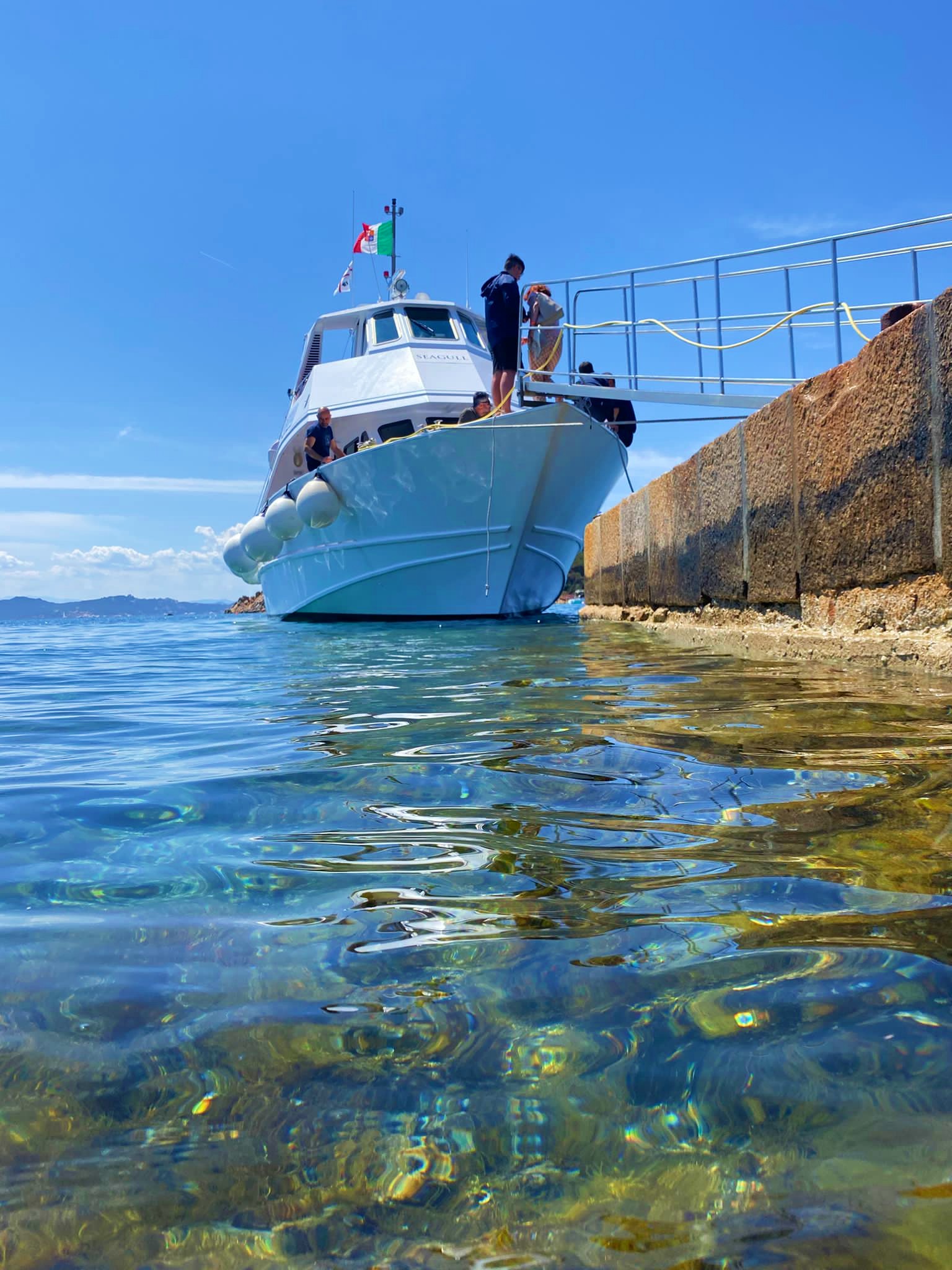 Nos encontramos 1 hora antes de la salida en el puerto de Santa Teresa di Gallura: nuestro barco está frente a la guardia costera. A bordo, tendrás que hacer el check-in y pagar la tasa de aterrizaje de 5€. Estaremos de regreso en Santa Teresa alrededor de las 5:15 pm.