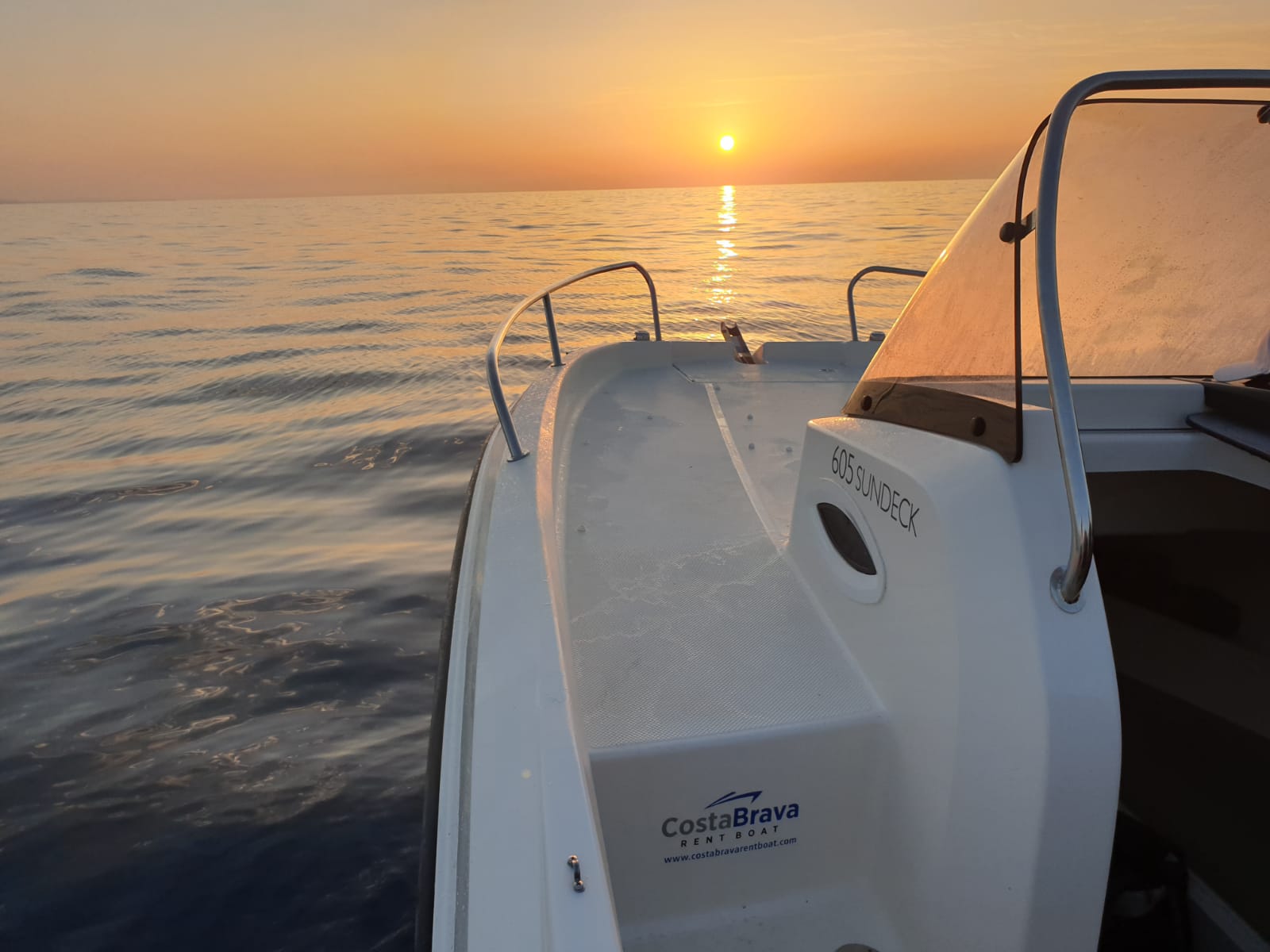 Embarca en un inolvidable paseo en barco privado al atardecer por la impresionante Costa Brava, saliendo de Platja d'Aro hasta S’Agaró. Descubre las playas más hermosas y los secretos mejor guardados de la región, mientras disfrutas de la comodidad de un espacioso barco que puede albergar hasta 21 personas, equipado con un sistema de sonido envolvente y baños. Tu aventura incluye una bebida de bienvenida para comenzar el viaje, un patrón profesional para guiarte, y equipos de snorkel y una tabla SUP para explorar el vibrante mundo submarino. Disfruta del atardecer y de una parada para nadar, con una bebida y aperitivos para cada persona. Este paseo en barco exclusivo al atardecer es ideal para familias, grupos de amigos o parejas.
