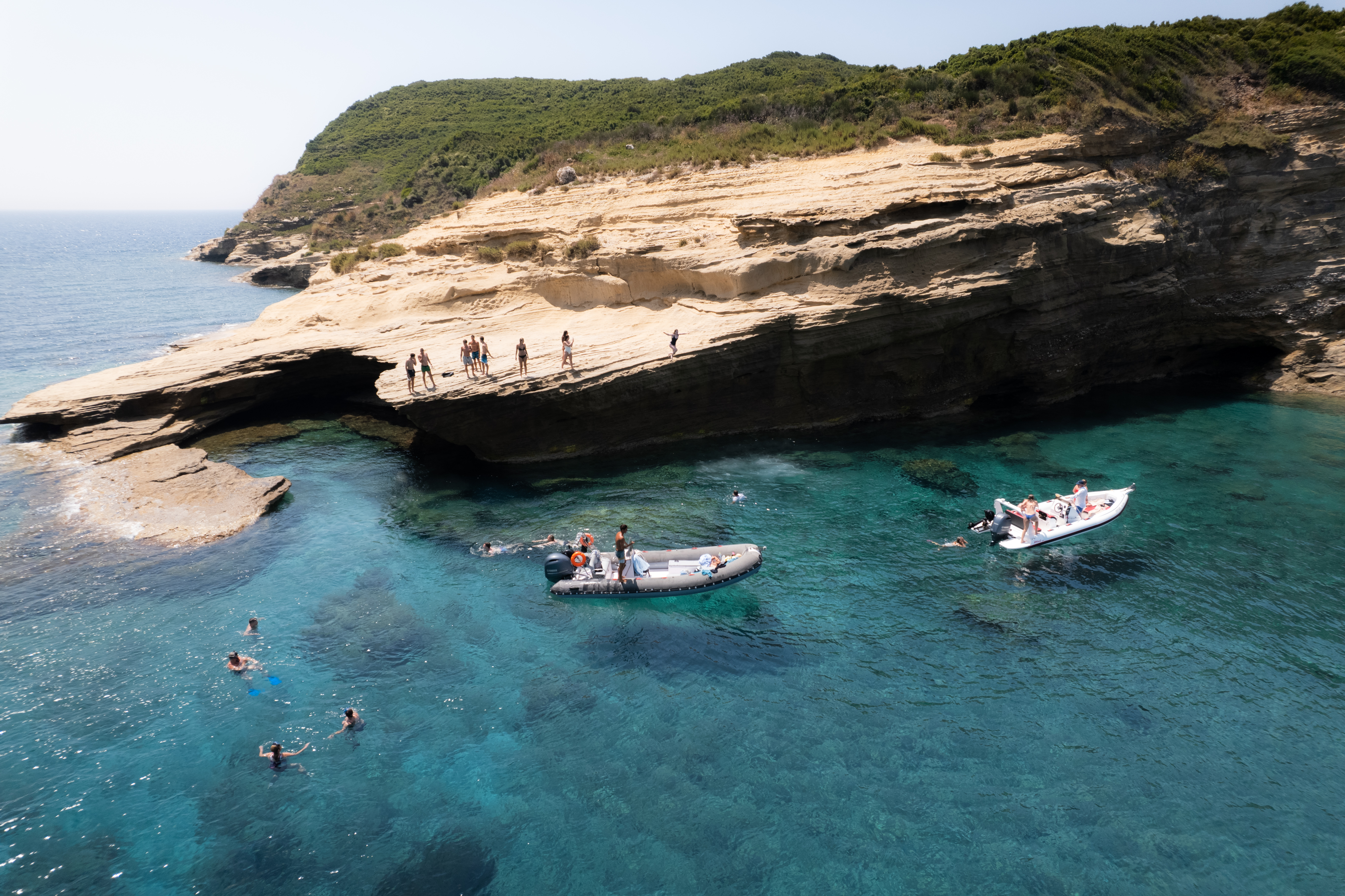 ¡Pasa un maravilloso tiempo en el mar con nuestro paseo privado en barco desde la playa de San George! Nuestra aventura en aguas azules comenzará en San George Beach continuando hacia el noroeste, con nuestra primera parada en la cueva de Porto Timoni durante 15 minutos para explorar la cueva. Continuamos hacia la Porto Timoni Double Bay para una parada de 30 minutos para nadar antes de dirigirnos hacia la pequeña isla Diaplo. En Diaplo, pasaremos un poco de tiempo nadando y saltando desde los acantilados arenosos.