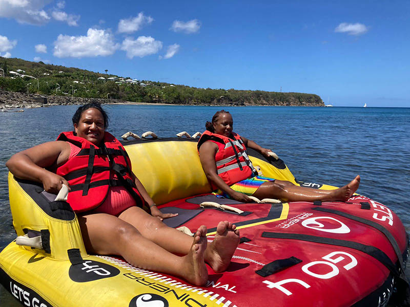 Sumérgete en una aventura emocionante con nuestros paseos en inflables en las playas de Ferry y Leroux en Deshaies! Perfecto para familias, grupos de amigos o buscadores de diversión, nuestros emocionantes paseos incluyen el Crazy Sofa, Crazy UFO y Flyers, acomodando grupos de 2, 3 o incluso 4 personas. Experimenta la pura alegría y emoción mientras deslizas sobre las olas, agarrándote fuerte con risas resonando en el aire. Nuestro equipo proporciona todas las instrucciones de seguridad necesarias y el equipo, asegurando que te sientas seguro y listo para divertirte. La actividad dura aproximadamente 15 minutos, ofreciendo tiempo suficiente para disfrutar de las impresionantes vistas y la emoción de la velocidad. Las playas de Ferry y Leroux son conocidas por sus aguas tranquilas y acogedoras, perfectas para una primera experiencia.