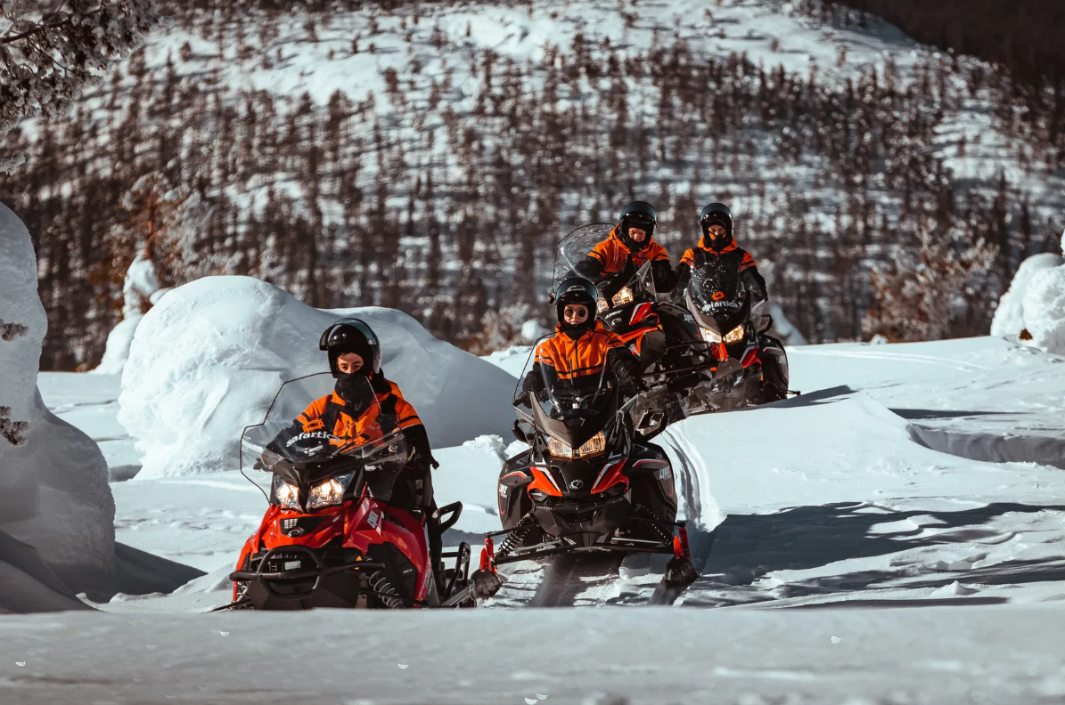 Los niños mayores de 140 cm pueden viajar como pasajeros en una moto de nieve (sujeto a disponibilidad). En este caso se aplica el precio de adulto