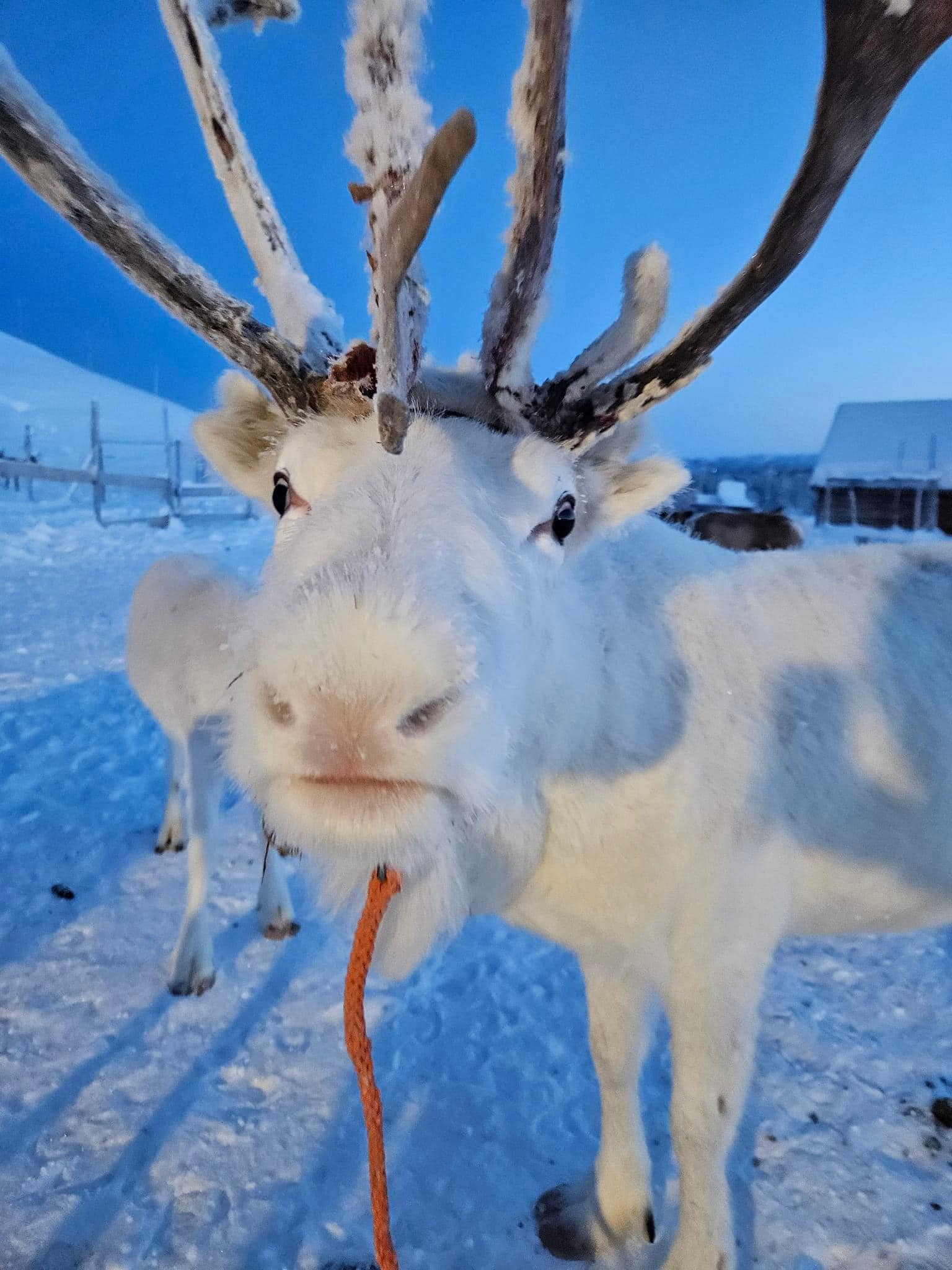 Deslízate silenciosamente a través de los paisajes árticos nevados de Alta, Noruega, en un mágico paseo en trineo de renos por la noche bajo las auroras boreale. Aquí, el resplandor de la aurora, la naturaleza intacta y la atmósfera invernal tranquila crean una experiencia verdaderamente inolvidable. Comienza tu aventura arropado en cálidas capas mientras conoces a los majestuosos renos, y tu amable guía Sami te lleva a través de este maravilloso mundo invernal ártico. El trineo se desliza suavemente sobre la nieve, y el suave crujido de los cascos es el único sonido, permitiéndote sumergirte completamente en el entorno sereno iluminado por las danzantes auroras boreales.