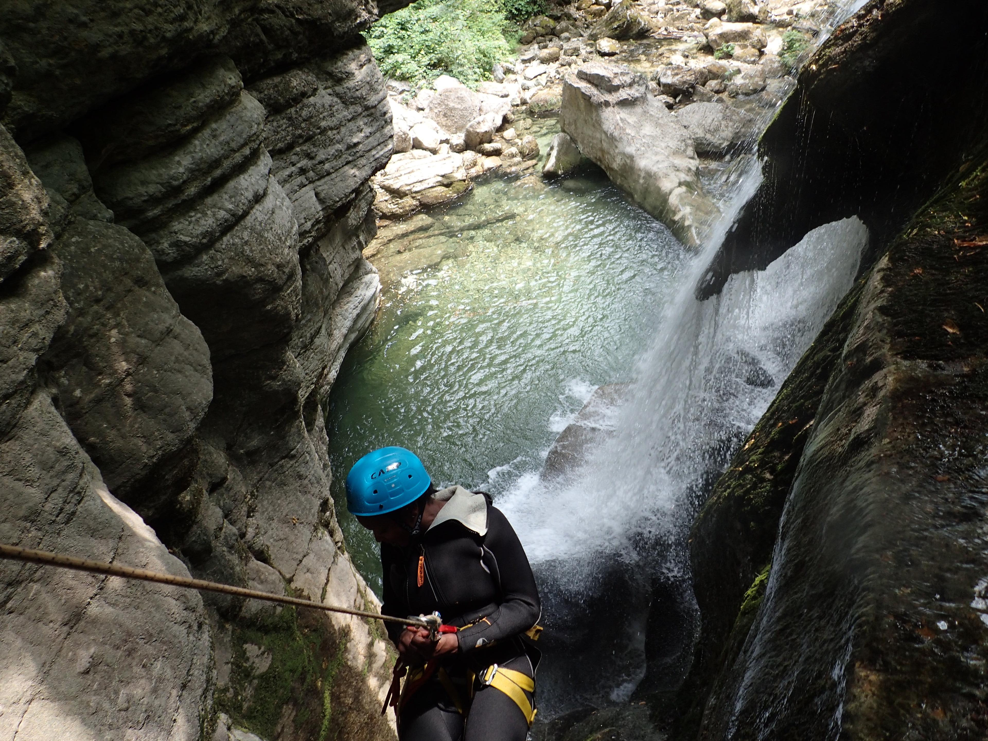 Barranquismo intermedio en el cañón de Angon cerca de Annecy