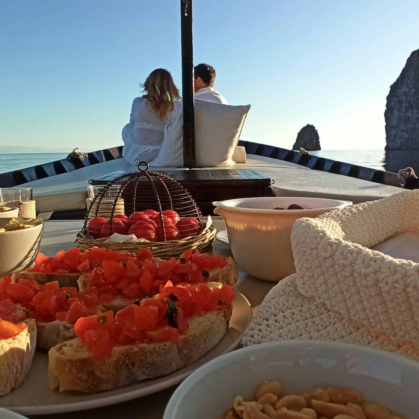 Préparez-vous à découvrir les beautés de la Sicile lors d'une balade privée en bateau autour du sud de Lipari et Vulcano ! Notre gozzo élégant et traditionnel, un bateau de pêche ou de plaisance italien typique considéré comme la "mère de tous les bateaux méditerranéens", vous accompagnera le long des plus belles plages et îles de la région, vous offrant des heures de détente et de plaisir.