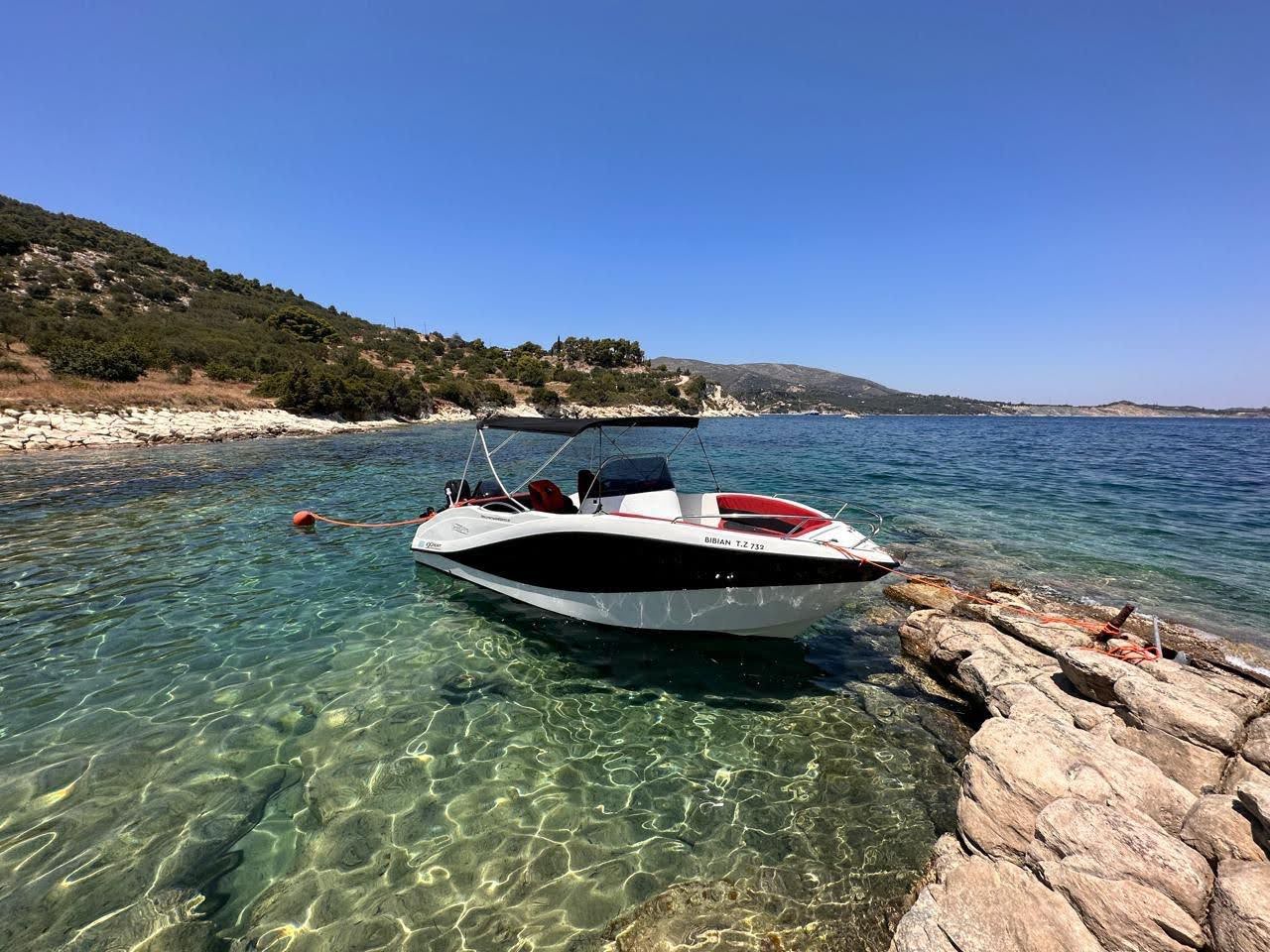 At our stand in the port of Agios Sostis (Laganas 290 92, Greece).