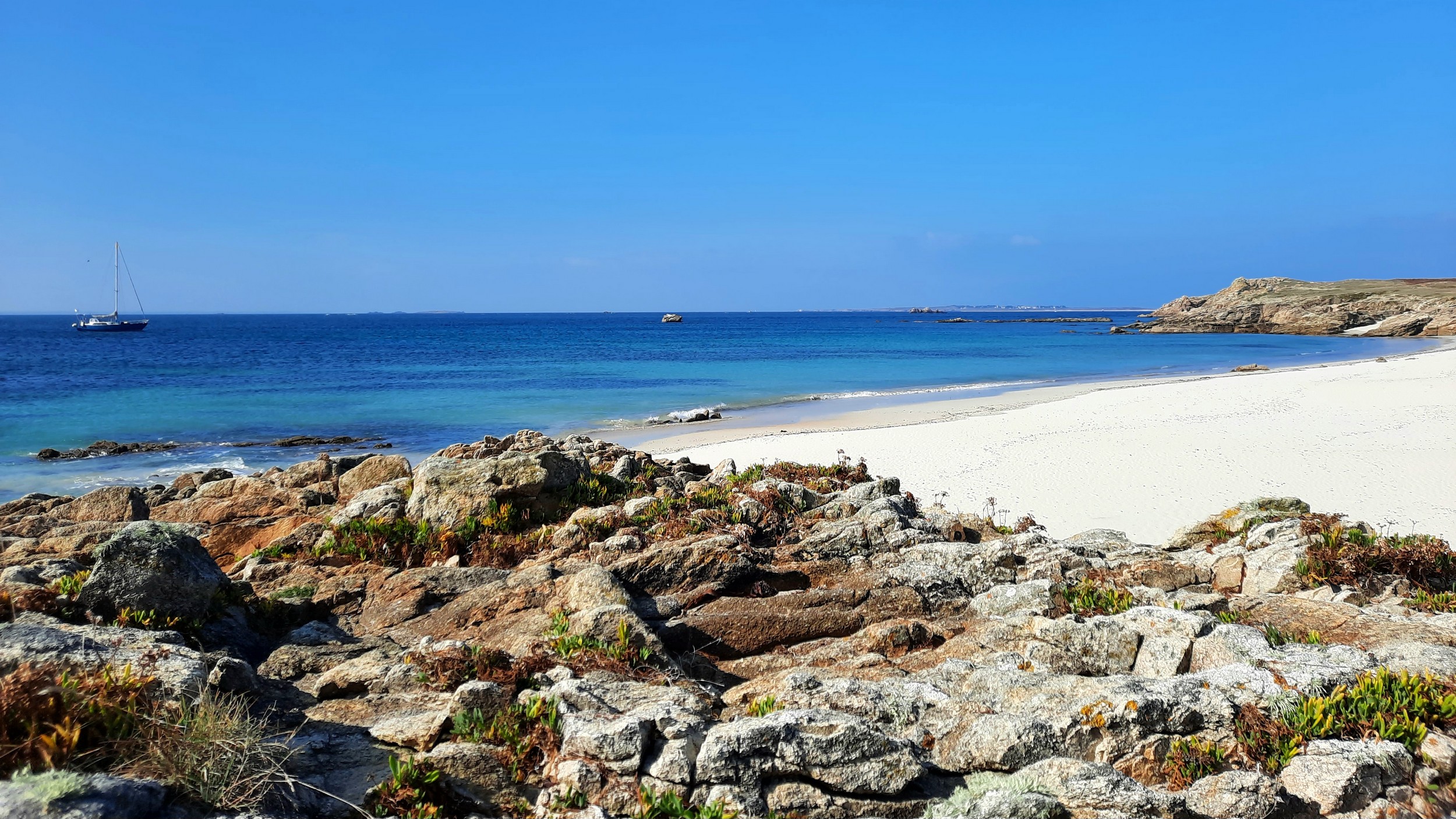 Houat, une île attachante de 4 km de long sur 1,5 km de large, est un véritable trésor caché derrière la carte postale du port Saint-Gildas. Vous serez émerveillé par les plus belles plages d'Europe, avec leurs larges horizons de sable fin et doré qui glissent en pente douce vers une eau turquoise. Le sentier pédestre longe une côte spectaculaire, découpée et d'une beauté à couper le souffle. Houat est un véritable cocon de bien-être, une parenthèse hors du temps qui ravira les randonneurs et les coureurs grâce à ses sentiers côtiers.