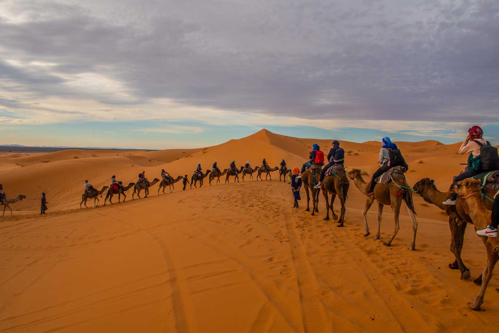 • Profitez de balades à dos de chameau dans les sables dorés du désert du Sahara au coucher et lever du soleil