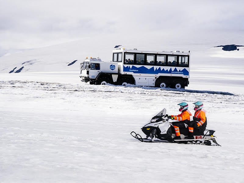 Si vous recherchez l'aventure et des paysages glacés à couper le souffle, notre excursion en motoneige sur le glacier Langjökull avec visite du tunnel de glace depuis Húsafell est faite pour vous ! Imaginez-vous filer à toute allure sur l'immense étendue du glacier Langjökull en Islande, guidant une motoneige à travers son terrain glacé. L'excursion commence par une palpitante balade de 40 minutes en motoneige. Nouveau en motoneige ? Pas de souci ! Nos guides experts vous fourniront toutes les instructions nécessaires. Cependant, un permis de conduire valide est requis pour conduire la motoneige. Cette partie de l'aventure vous permet de vivre pleinement la beauté saisissante du deuxième plus grand glacier d'Islande tout en ressentant le vent froid contre votre visage.