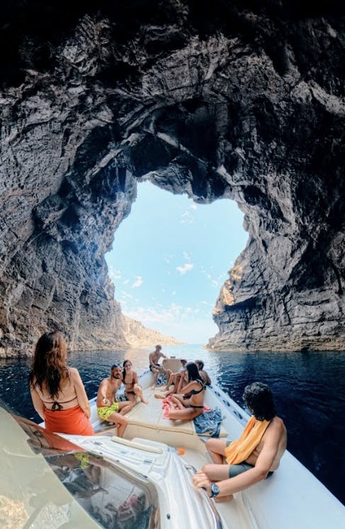 Embarquez pour une balade privée en bateau semi-rigide le long de la côte sud de la Sardaigne, parfaite pour se détendre et nager en famille ou entre amis. Cette expérience exclusive comprend des arrêts dans de magnifiques criques pour profiter d'une baignade dans des eaux cristallines.