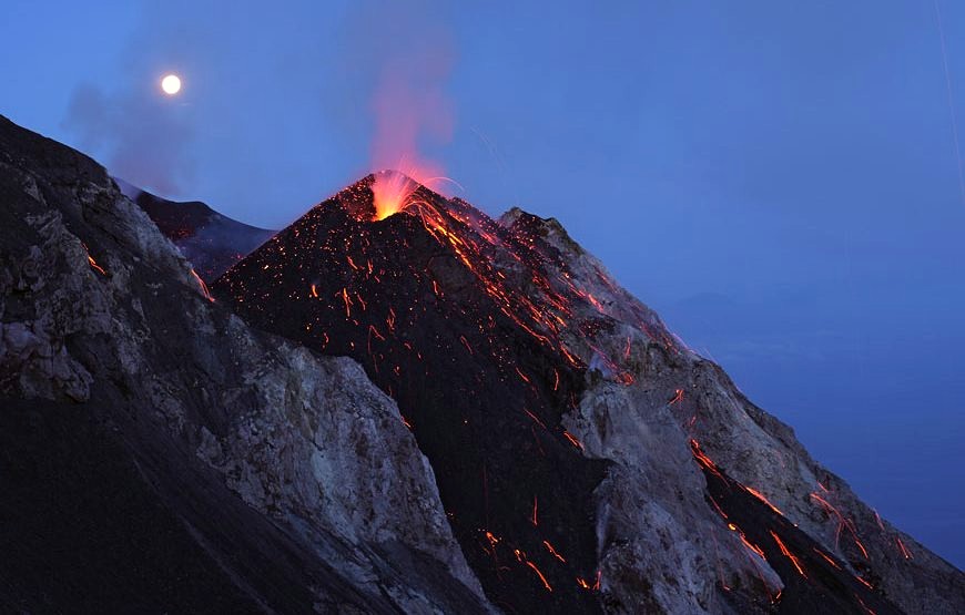 Verso l’ora del tramonto lasceremo il porto e torneremo sotto la Sciara del Fuoco, per assistere alle incredibili eruzioni esplosive di questo vulcano in continua attività.