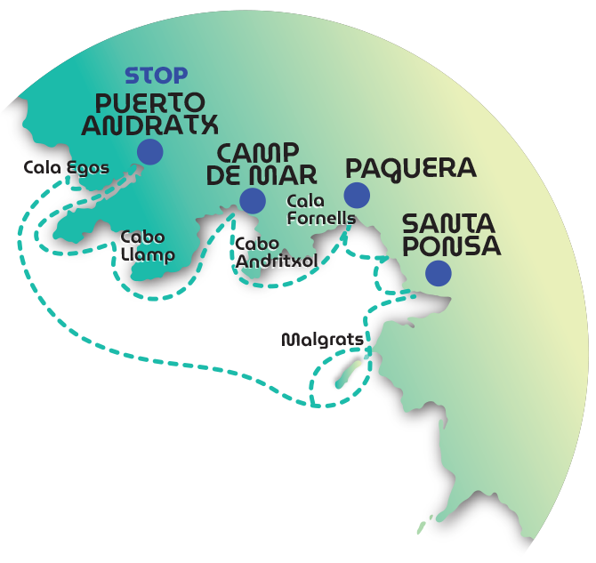 Direttamente presso la nostra barca di fronte al Bar Tora (Avenida de la Playa 8, Paguera, 07160)