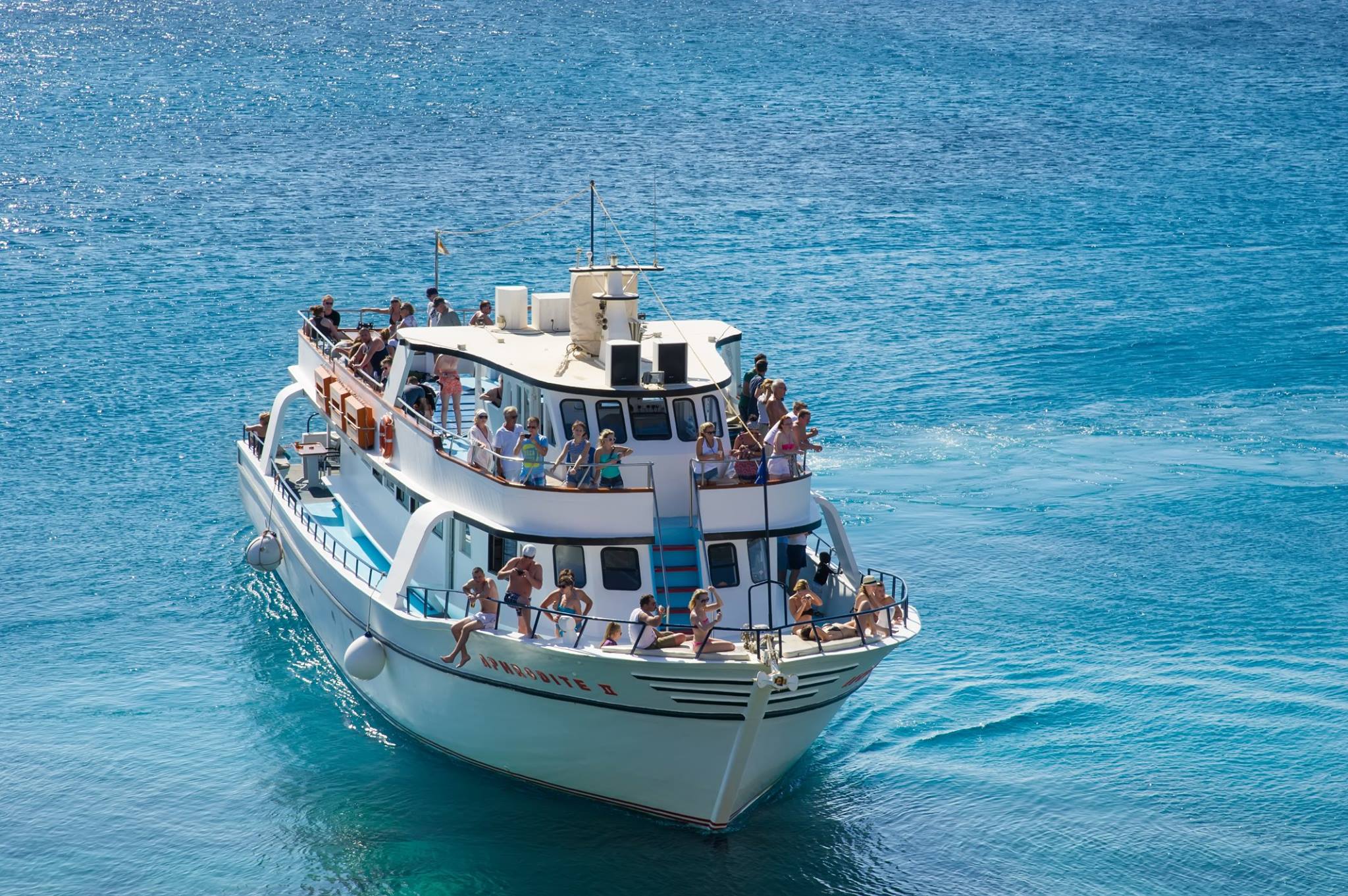 Il nostro tour in barca parte ogni giorno dal porto di Ayia Napa alle 09:30 (vi preghiamo di essere a bordo per le 09:15) per una giornata di relax con la Aphrodite 2-Lazy Day Cruise. Vedrete tutte le baie e le spiagge durante il tour più lungo della costa orientale e ammirerete le Grotte Marine di Ayia Napa, Capo Greco, il Ponte degli Innamorati, la Cappella sulla Scogliera, Konnos Bay Turtle Cove, Fig Tree Bay e Protaras.