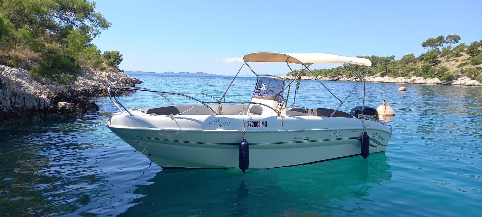 Scoprite la libertà del mare con il nostro elegante motoscafo, disponibile per il noleggio dalla splendida baia di Osibova a Milna, Croazia. Il Speedy EVO 590 è dotato di un motore fuoribordo Mercury 115 hp e può ospitare comodamente fino a 7 persone. Questa barca completamente attrezzata offre tutto il comfort necessario per una giornata perfetta sull'acqua. Che stiate pianificando una gita in famiglia o una giornata con gli amici, potete navigare al vostro ritmo e scegliere il vostro itinerario, esplorando la bellissima costa dell'isola di Brac. Si prega di notare che è necessaria una patente valida per pilotare la barca, ma se non ce l'hai, non preoccuparti—puoi noleggiare la barca con uno skipper a un costo aggiuntivo.