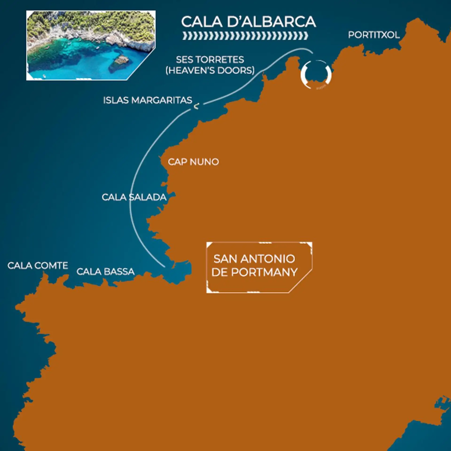 - Ci incontreremo 30 minuti prima dell'orario di prenotazione nel porto di San Antonio (parcheggio gratuito all'ingresso del porto).