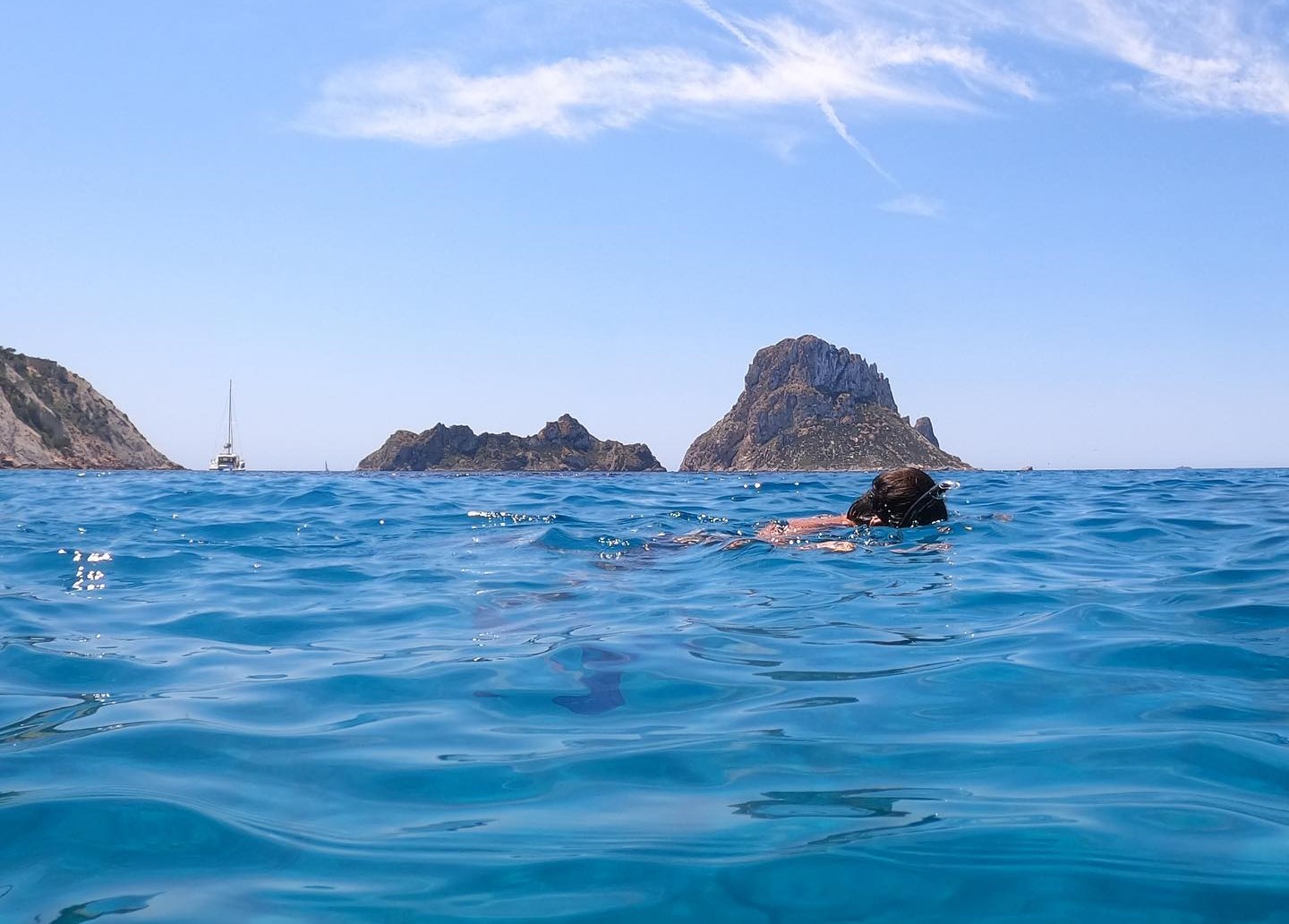 Gita in catamarano con fondo di vetro a Es Vedrà con snorkeling e aperitivo