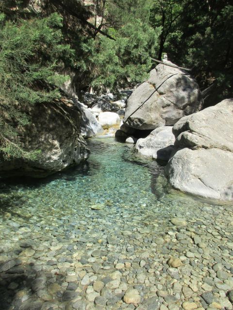 Il percorso vi guiderà attraverso terreni accidentati, antiche foreste e lungo un fiume alimentato da sorgenti di acqua dolce. Potrete ammirare le viste mozzafiato della splendida catena montuosa di Creta e avvistare le capre di montagna selvatiche. Accompagnati da una guida di montagna esperta, fluente in inglese, tedesco e greco, riceverete tutte le informazioni necessarie e i biglietti per l'escursione e il traghetto.