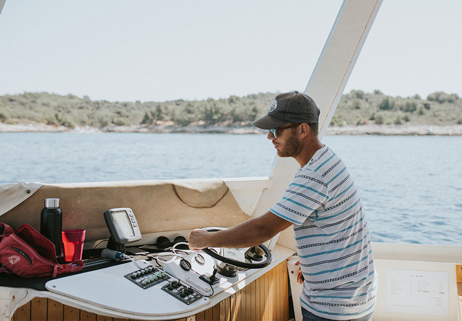 At the big pier in Fažana port. You will see the boat at the first mooring spot if you come from the port parking lot.
