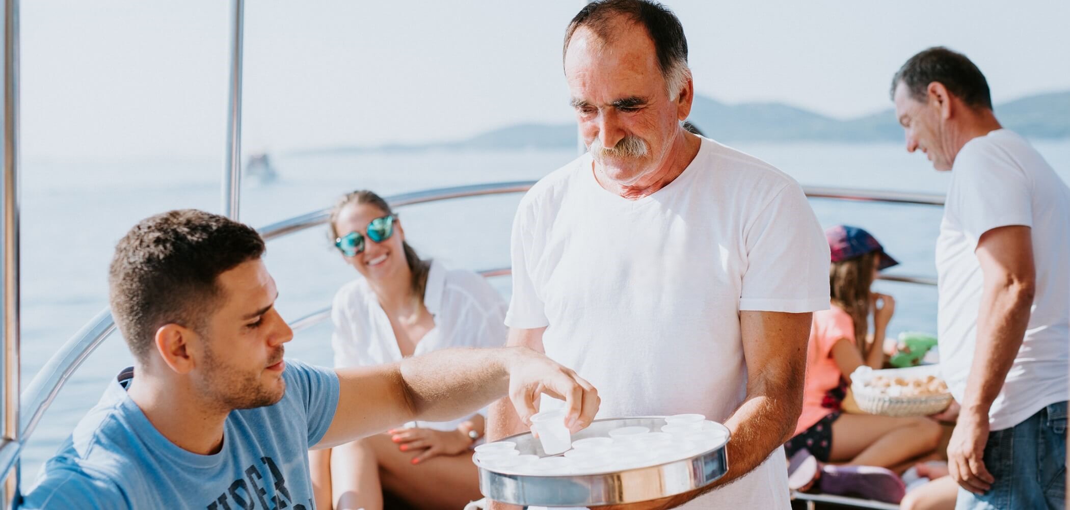 Il viaggio continua verso l'isola di Katina, un'isola disabitata situata all'ingresso della baia di Telašćica. Qui farete una pausa per il pranzo e avrete la possibilità di nuotare. Katina è separata da Dugi Otok da uno stretto passaggio e fa parte del Parco Naturale di Telašćica. Durante tutto il tour, potrete godere gratuitamente di vino, succhi e acqua. Questo tour è perfetto per chi cerca un modo unico per scoprire l'Adriatico.