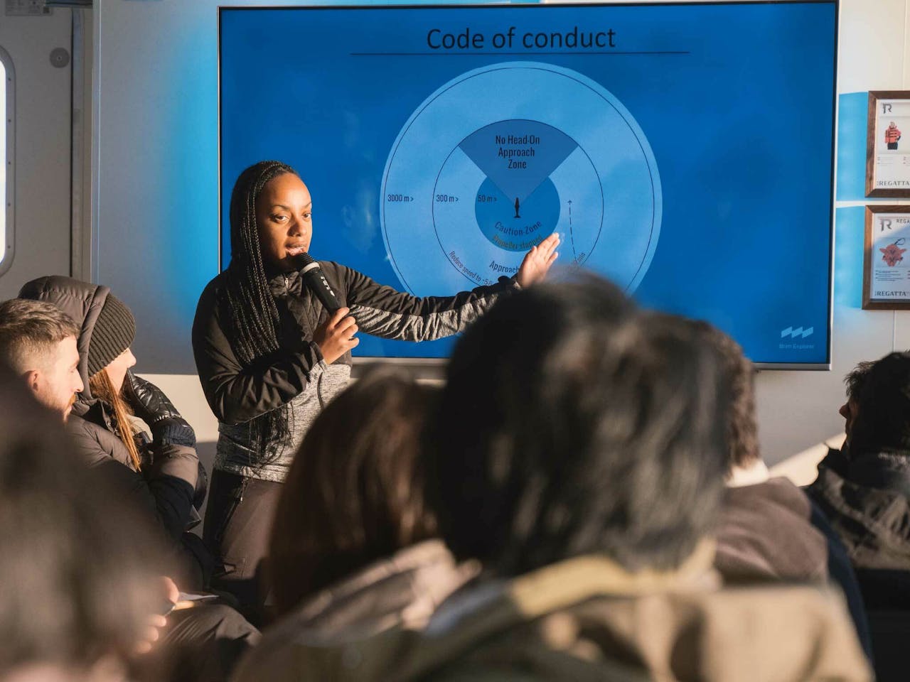 Il nostro capitano esperto e le guide saranno completamente dedicati a offrirvi la migliore possibilità di osservare le maestose megattere, balenottere comuni e orche nei loro naturali terreni di alimentazione. Condivideranno storie personali coinvolgenti della zona di Tromsø, arricchendo la vostra esperienza con storie locali. Se avremo la fortuna di avvistare queste magnifiche creature, passeremo al nostro motore elettrico e silenzioso, riducendo al minimo qualsiasi disturbo per le balene e accentuando la tranquillità del momento.