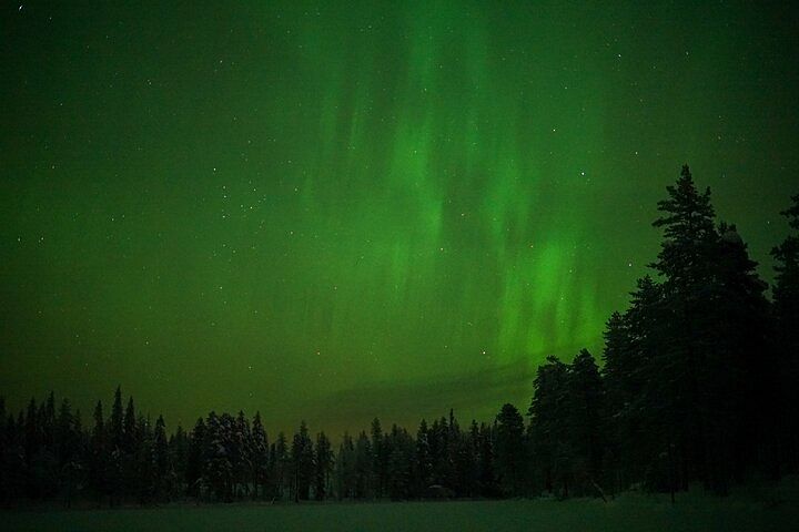 Dopo aver assaporato le viste eteree, ci dirigiamo verso la nostra ultima tappa, un luogo isolato vicino al fiume Kemijoki, dove il riflesso delle aurore boreali sull'acqua aggiunge un tocco magico. Qui, potrete rilassarvi e godere dell'ambiente sereno mentre le nostre guide vi aiutano a perfezionare le vostre abilità fotografiche. Questo tour è perfetto per avventurieri, appassionati di fotografia e famiglie che desiderano vivere le aurore boreali in tutto il loro splendore.