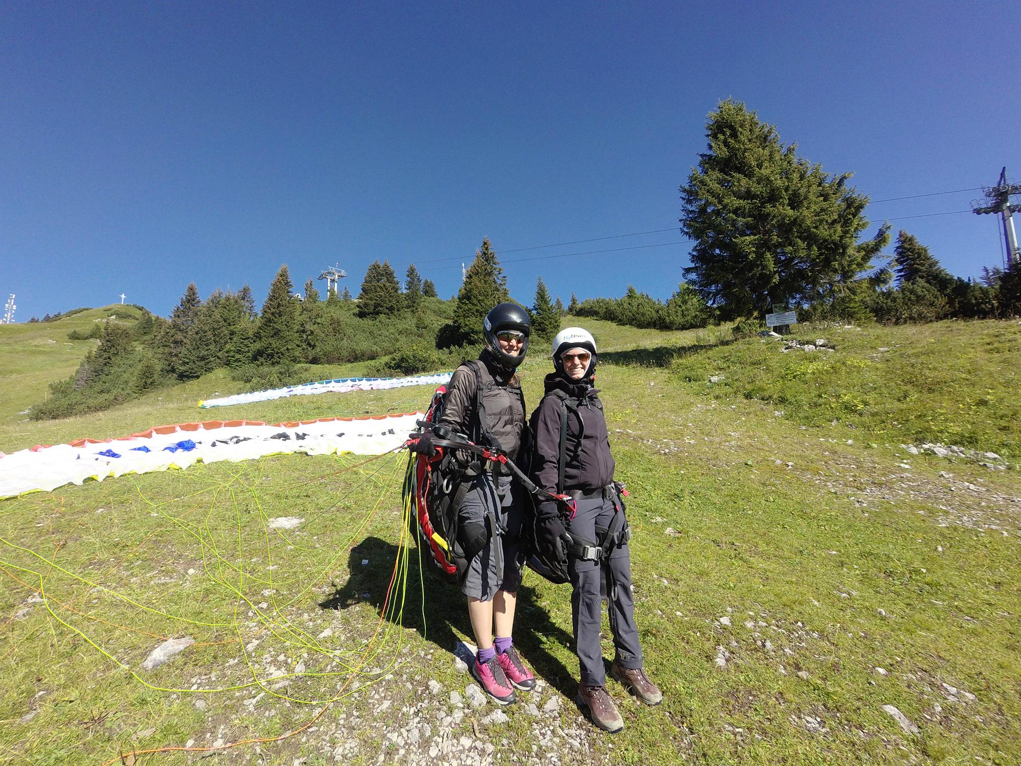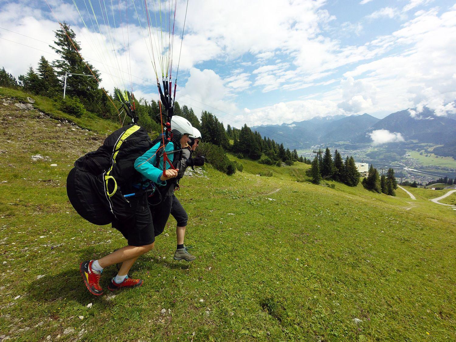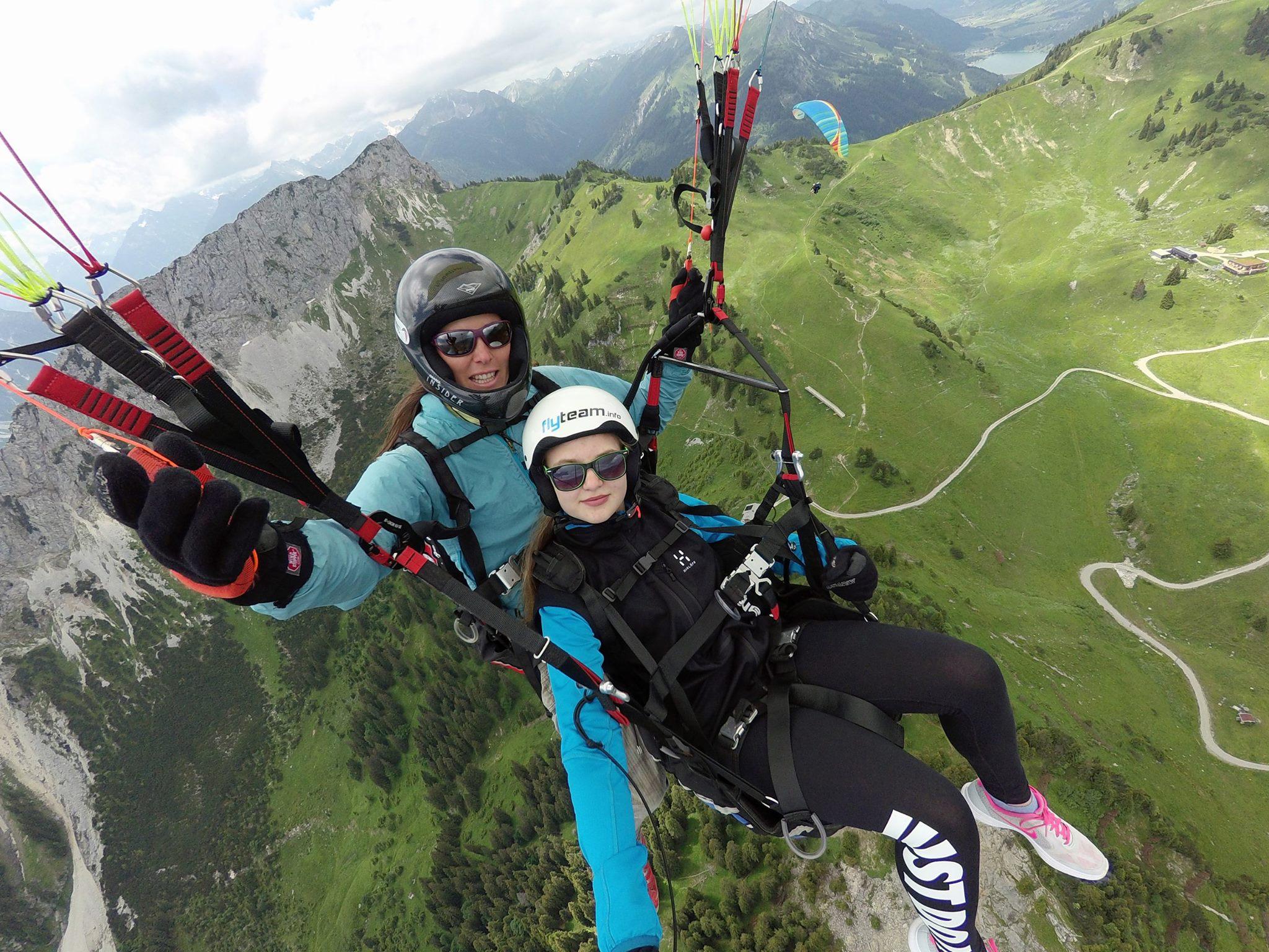 Zodra de uitrusting gereed is, maak je je klaar voor vertrek. Na wat snelle passen tegen de wind in, ben je al in de lucht. Tijdens een tandemvlucht zit je voor de piloot en kun je ontspannen van het uitzicht genieten. Aan het einde van de vlucht landen we zo voorzichtig mogelijk op het landingsveld bij het dalstation, waar we elkaar aanvankelijk ontmoetten.