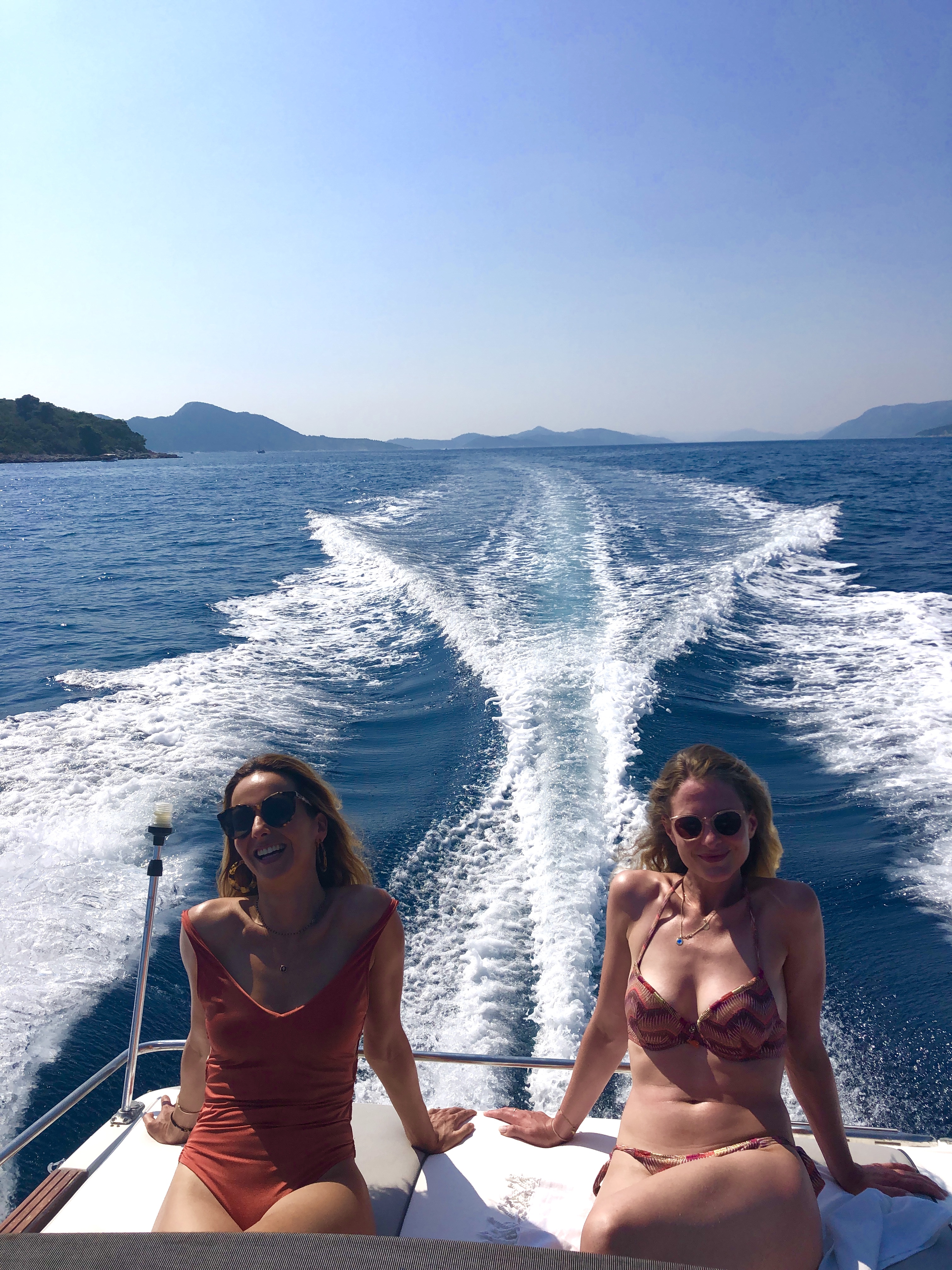 Uitzicht over de baai tijdens de privé boottocht van een hele dag van Dubrovnik naar de Elaphiti Eilanden georganiseerd door Snooky Tours Dubrovnik.Gasten op de boot tijden de privé boottocht van een hele dag van Dubrovnik naar de Elaphiti Eilanden georganiseerd door Snooky Tours Dubrovnik.
