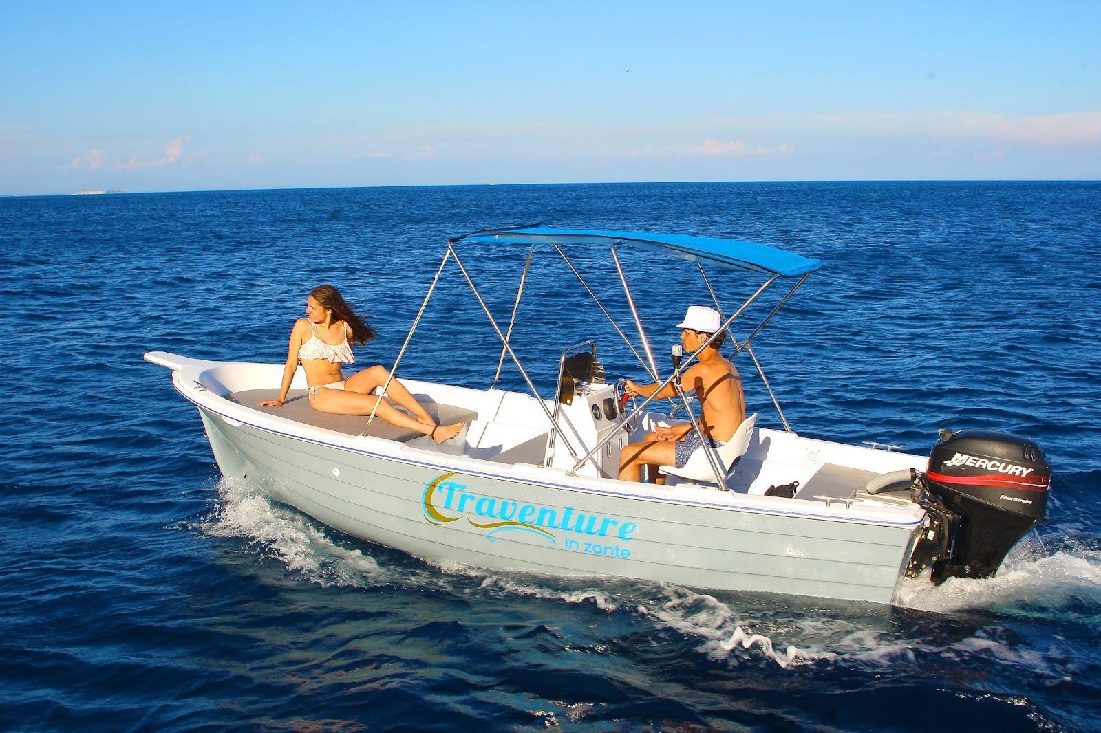 Ontdek het National Marine Park van Zakynthos op een bijzondere manier met onze bootverhuur in Agios Sostis! Voor deze bootverhuur heb je geen vaarbewijs nodig en is de boot eenvoudig zelf te besturen. Je kunt je eigen route kiezen, maar we geven je ook gelukkig tips voor de omgeving. Enkele hoogtepunten in de omgeving zijn Laganas Bay, waar de zeldzame Caretta-Caretta-schildpadden vaak zwemmen, of schildpaddeneiland "Marathonisi", waar de genoemde schildpadden leggen elk jaar hun eieren. We bezoeken ook graag de Keri Caves, die het water nog blauwer doen lijken en een of twee stranden bieden die ideaal zijn om te zwemmen.