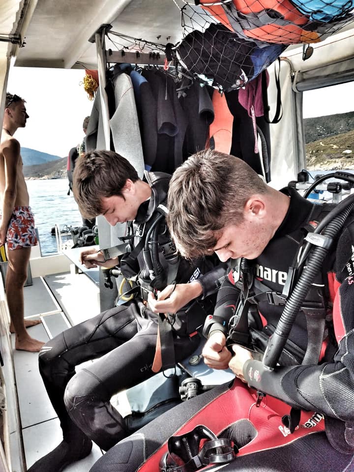 At our diving center (Via Renato Fucini 452, 57034 Marina di Campo)