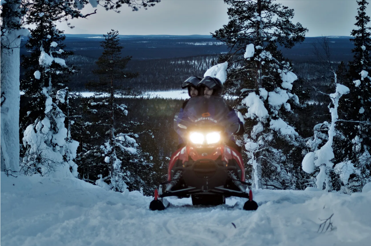 Sneeuwscootertochten zijn niet beschikbaar voor kinderen jonger dan 4 jaar. Kinderen van 4–14 jaar rijden in een slee die wordt getrokken door de sneeuwscooter van de gids. Voor comfort en veiligheid raden wij aan dat één ouder met kleine kinderen in de slee plaatsneemt
