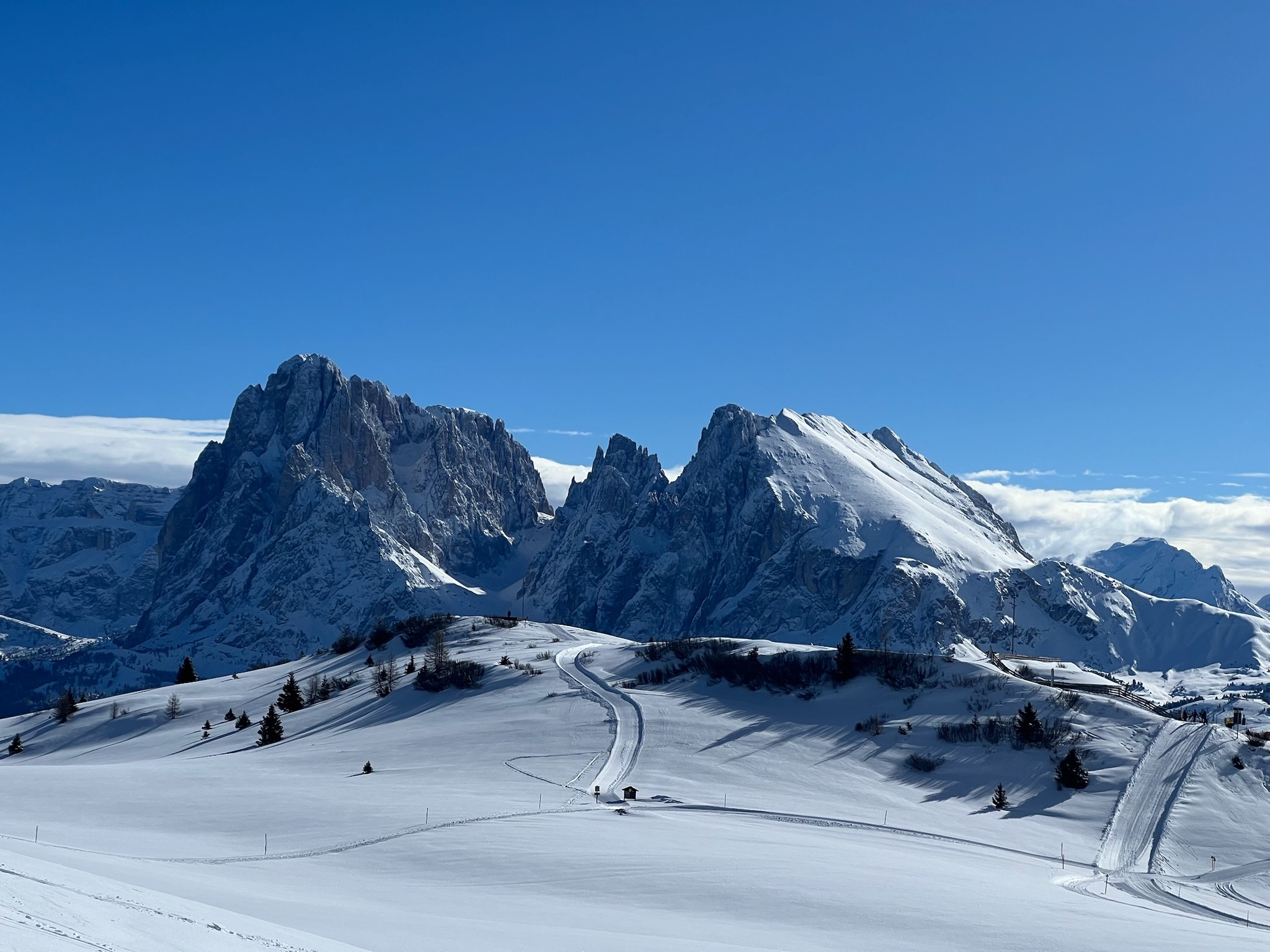 Gedurende de dag heb je de flexibiliteit om de route aan te passen, zodat je het meeste uit je tijd op de berg haalt. Elke stop biedt de kans om uit te rusten en te genieten van de adembenemende omgeving, met tijd voor het oefenen van specifieke vaardigheden. Of je nu je carvingtechniek perfectioneert of snelheid opbouwt op vlakkere delen, deze tour biedt de perfecte balans tussen uitdaging en plezier. Sluit je dag af met een gevoel van voldoening, nadat je de Dolomieten op een manier hebt verkend die echt van jou is.