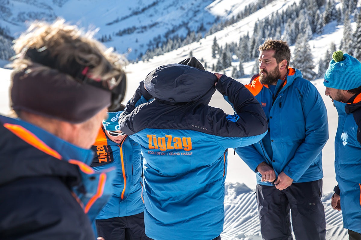 We ontmoeten elkaar voor de ZigZag-verzamelborden in Samoëns 1600, 10 minuten voor het begin van de les.