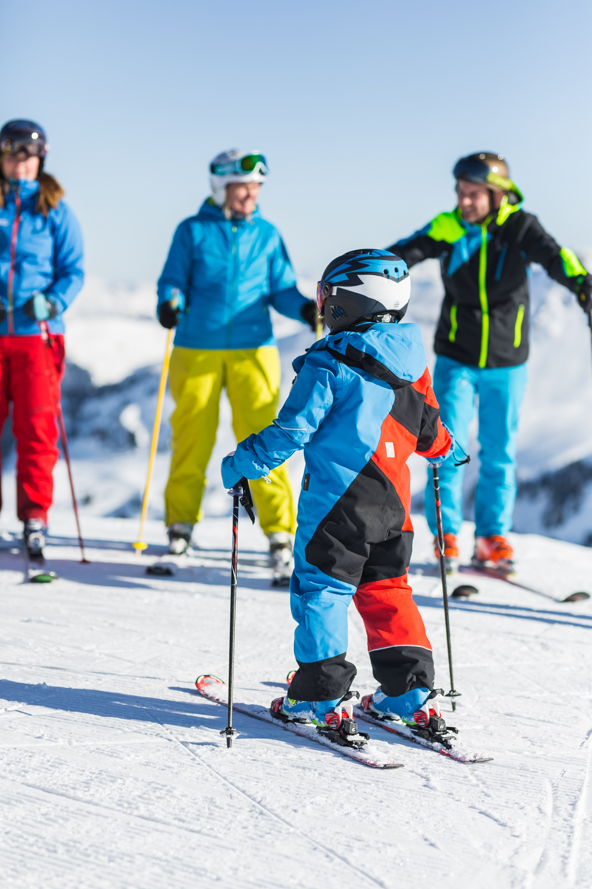 We ontmoeten elkaar bij het "Kinderland" kindergedeelte bij de bergstation van de Wildkogelbahn, 5 minuten voor het begin van de les.