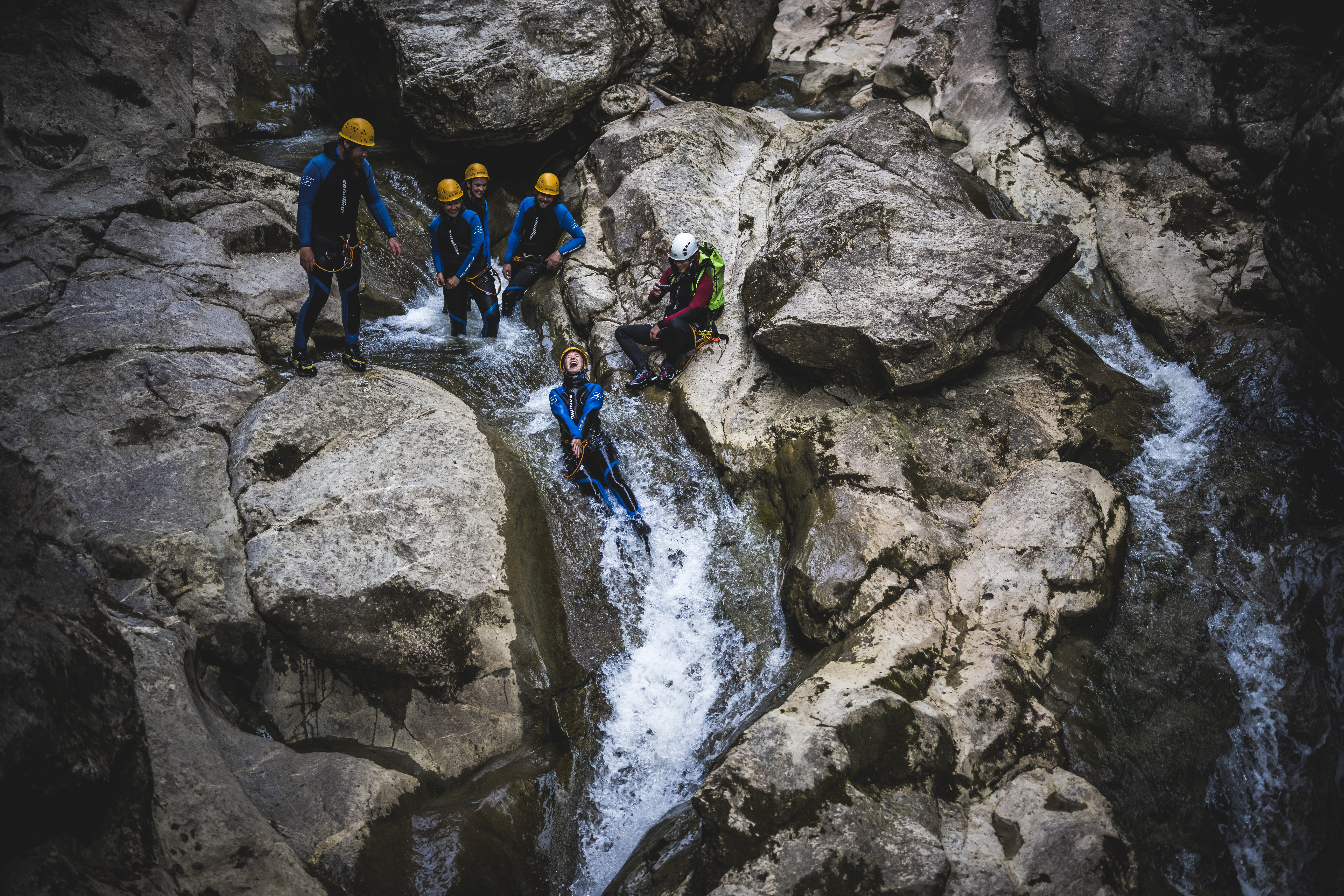 - Beschrijving: De kloof is smal, uitgespoeld en afgelegen. Omgeven door hoge rotswanden, banen we ons een weg onze weg naar beneden door de vele goten met het water naar beneden. Abseilen in de waterval, klim door een kleine grot, duiken door een spleet in de rots, hier krijg je het complete canyoning canyoningpakket.